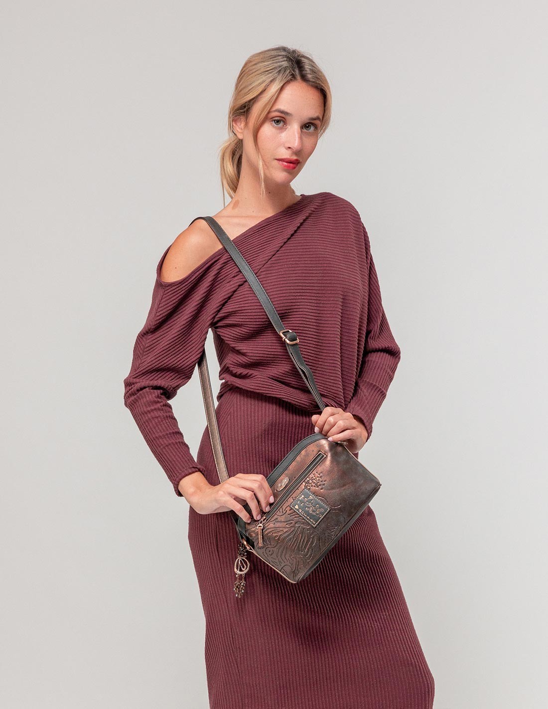 - Aquesta bandolera de mida mitjana, compta amb nansa ajustable a la mida, de manera que podràs adaptar-la sempre al llarg que prefereixis.