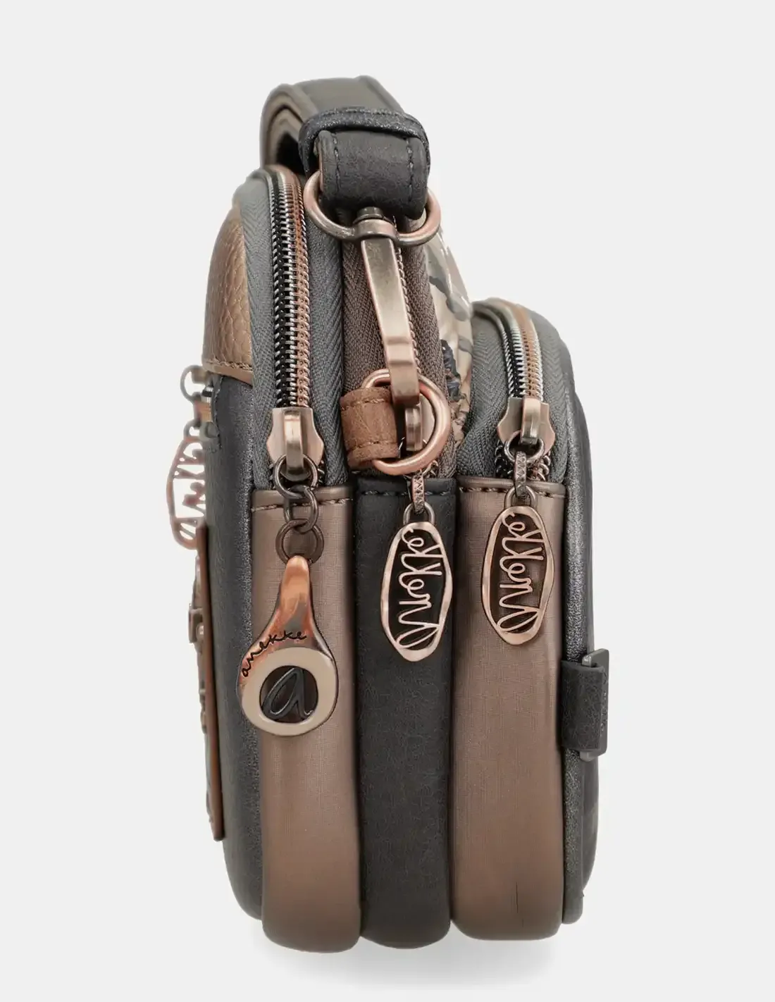 La Bandolera Petita Anekke Intentions és la companya ideal per portar el més essencial amb estil i lleugeresa. El seu disseny metal·litzat en tons gris, beix i taupe eleva qualsevol look, mentre el seu tamany compacte i funcionalitat resolen el caos de la bossa gran: ordena, protegeix i facilita el teu dia a dia sense perdre elegància.