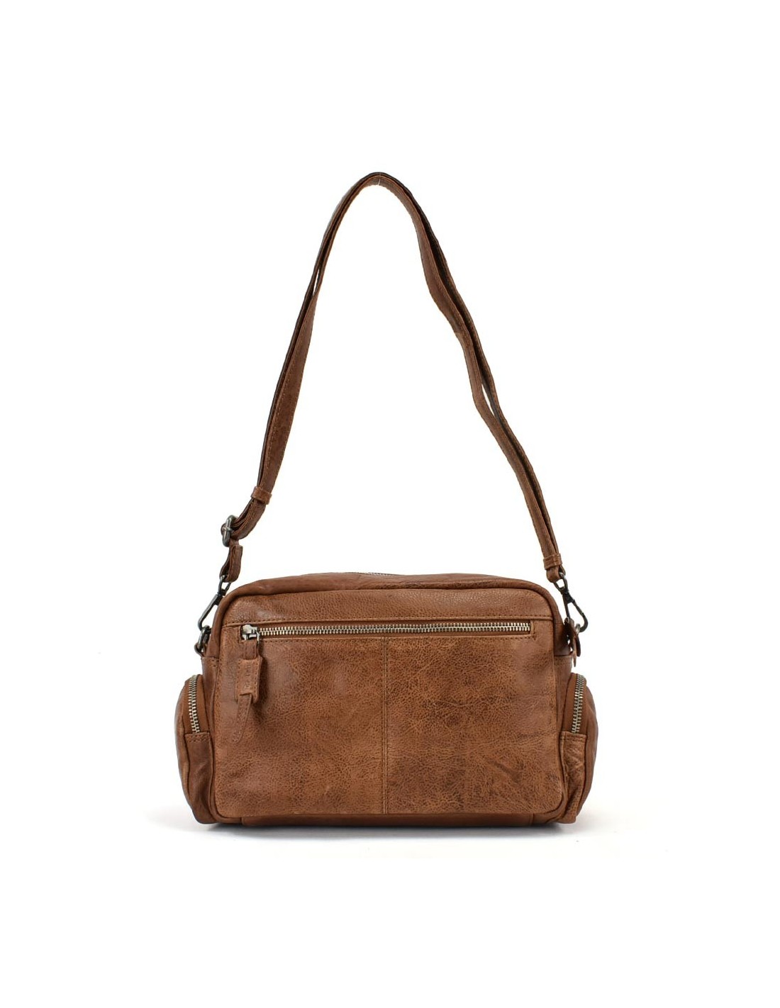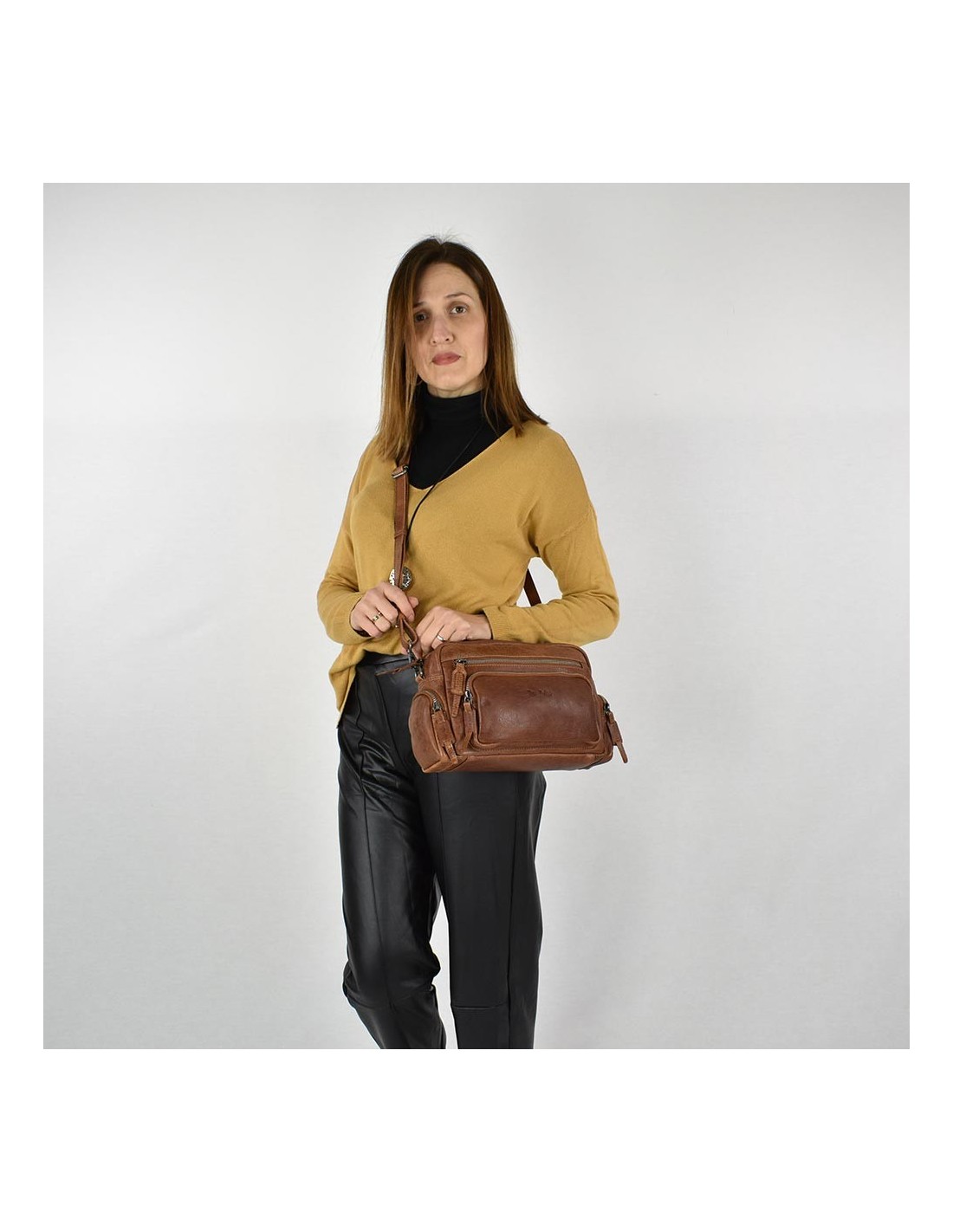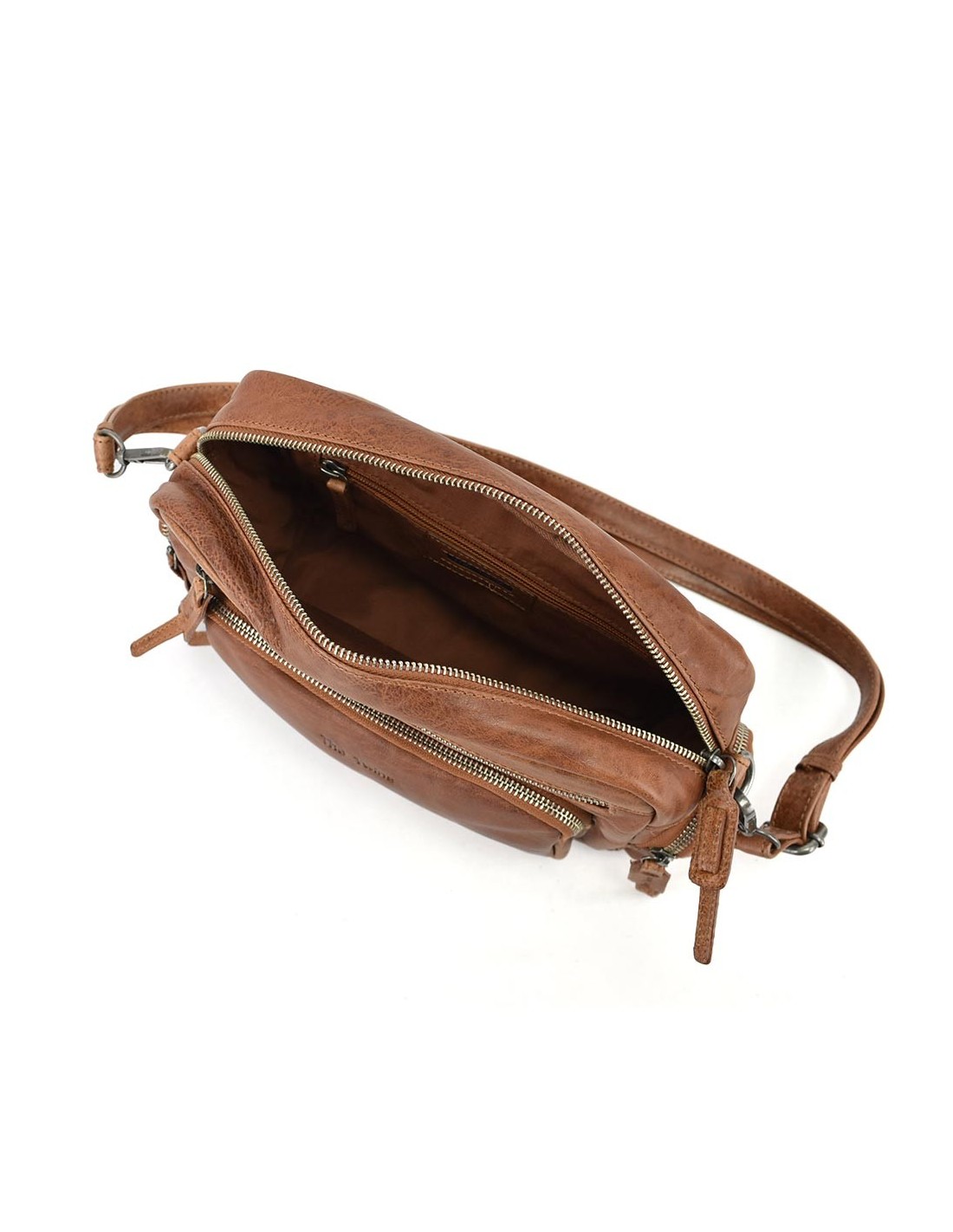 Bandolera en pell de color cuir The Twins - Open