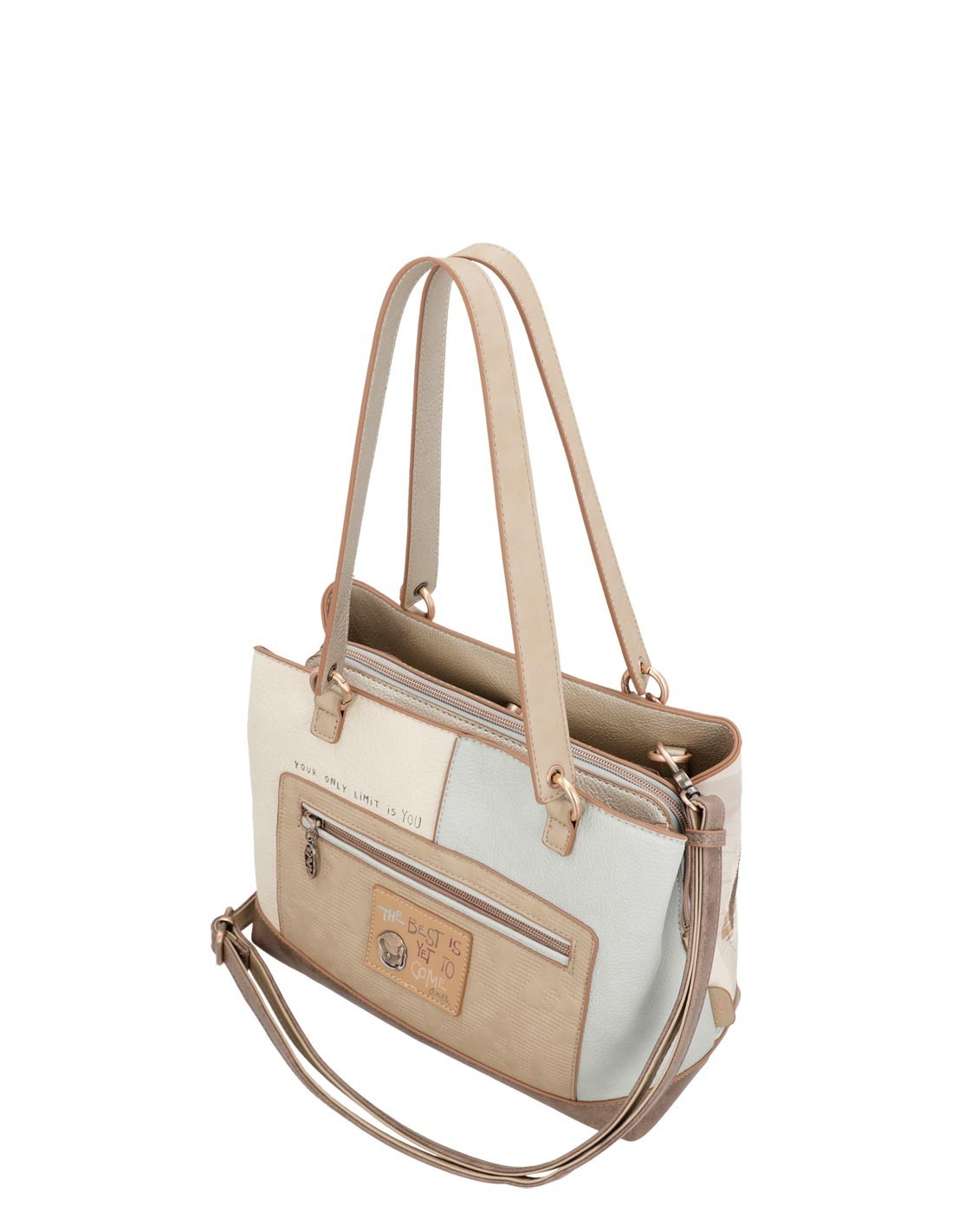Descobreix l'elegància i originalitat que t'ofereix aquesta preciosa bossa de la sèrie Passion d'Anekke. Amb les seves dues amplies anses d'espatlla i corretja bandolera ajustable, podràs portar-la còmodament a qualsevol lloc. El seu disseny mitjà compta amb 3 compartiments independents, dos amb tancament de botó i un central amb tancament de cremallera per a major seguretat. Al seu interior trobaràs butxaques obertes i amb cremallera, mentre que a la part posterior compta amb una pràctica butxaca exterior.