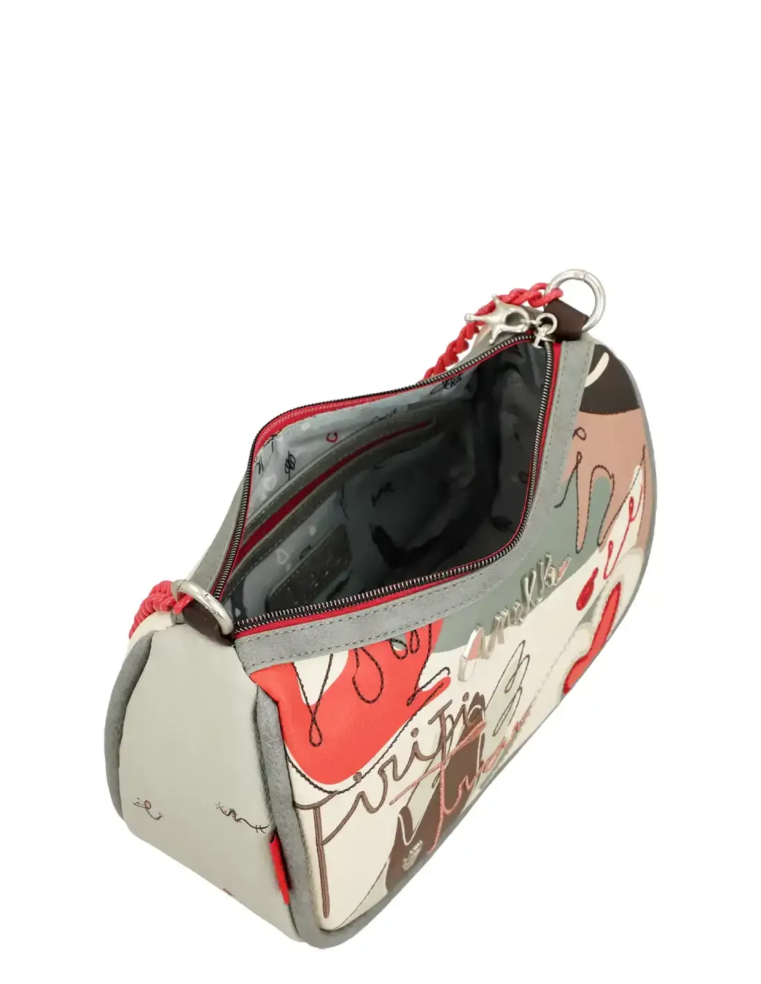 - Disseny Exclusiu i Artístic: Inspirat en l'art de Miró i l'expressió alegre del caràcter espanyol, aquesta bossa beige deslumbra amb detalls en gris, marró i vermell, a més de brodats i pins decoratius únics.