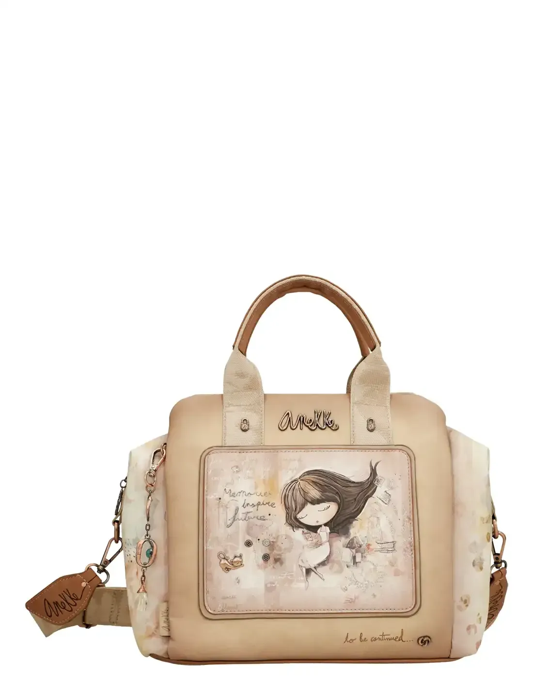 Imagina Anekke, asseguda tranquil·lament, escrivint les seves memòries de viatges en el seu diari mentre el sol acaricia el seu rostre. Cada vegada que miris la teva Bossa Anekke Memories, viatjaràs amb ella a través d estampats i il·lustracions que expliquen històries de somnis, amistats i descobriments. El seu delicat brodat amb la frase “Memories inspire future” t recordarà que els teus records són la millor inspiració per seguir creant grans moments en el present i el futur. Cada detall està pensat perquè portis amb tu alguna cosa més que una bossa: portes part d una col·lecció inoblidable, que celebra l emoció de viure i recordar.
