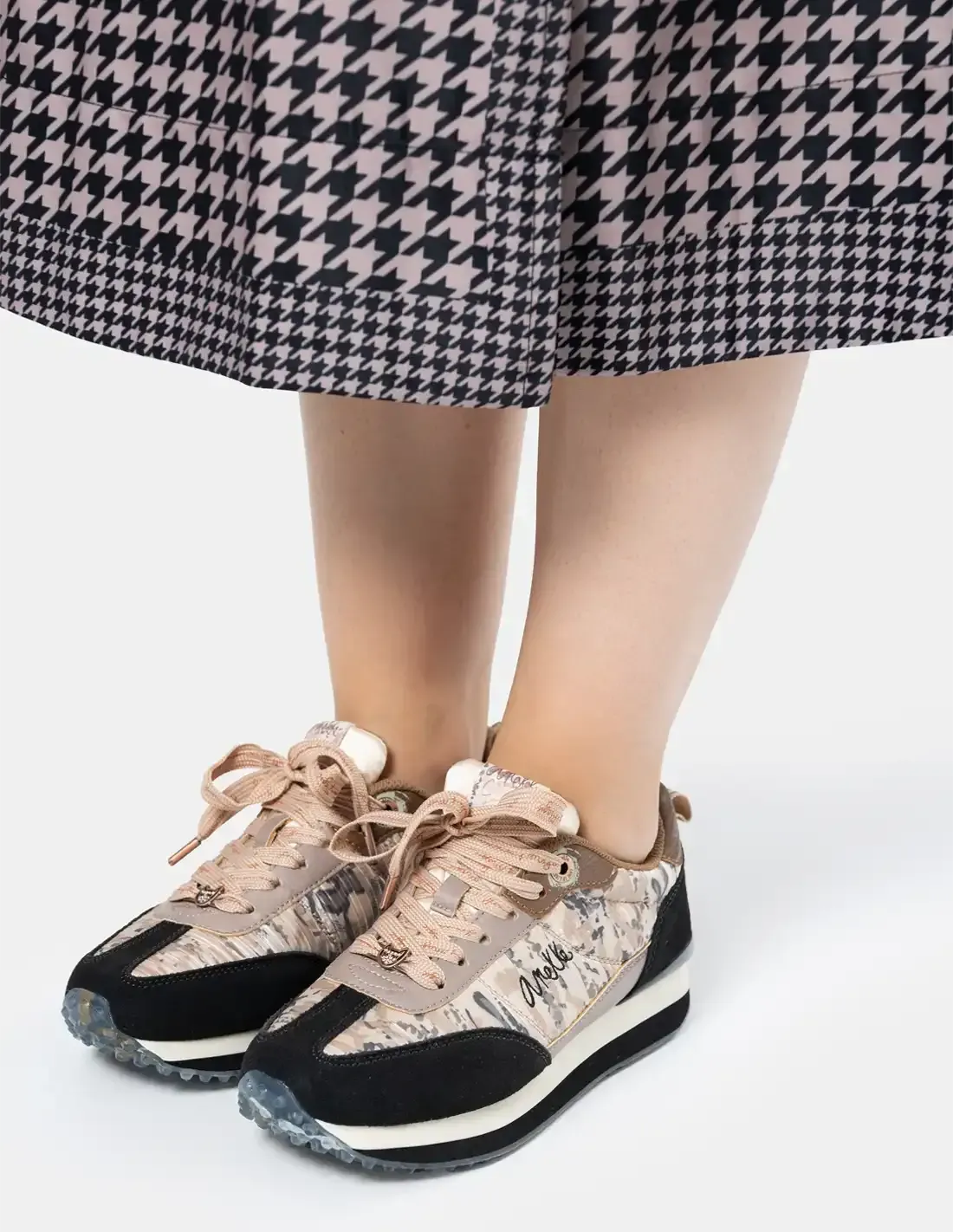 - Disseny icònic Anekke Real. Base negra i daurada amb parts estampades i detalls únics des dels cordons fins a les llengüetes; pertanyen a la col·lecció Anekke Real.