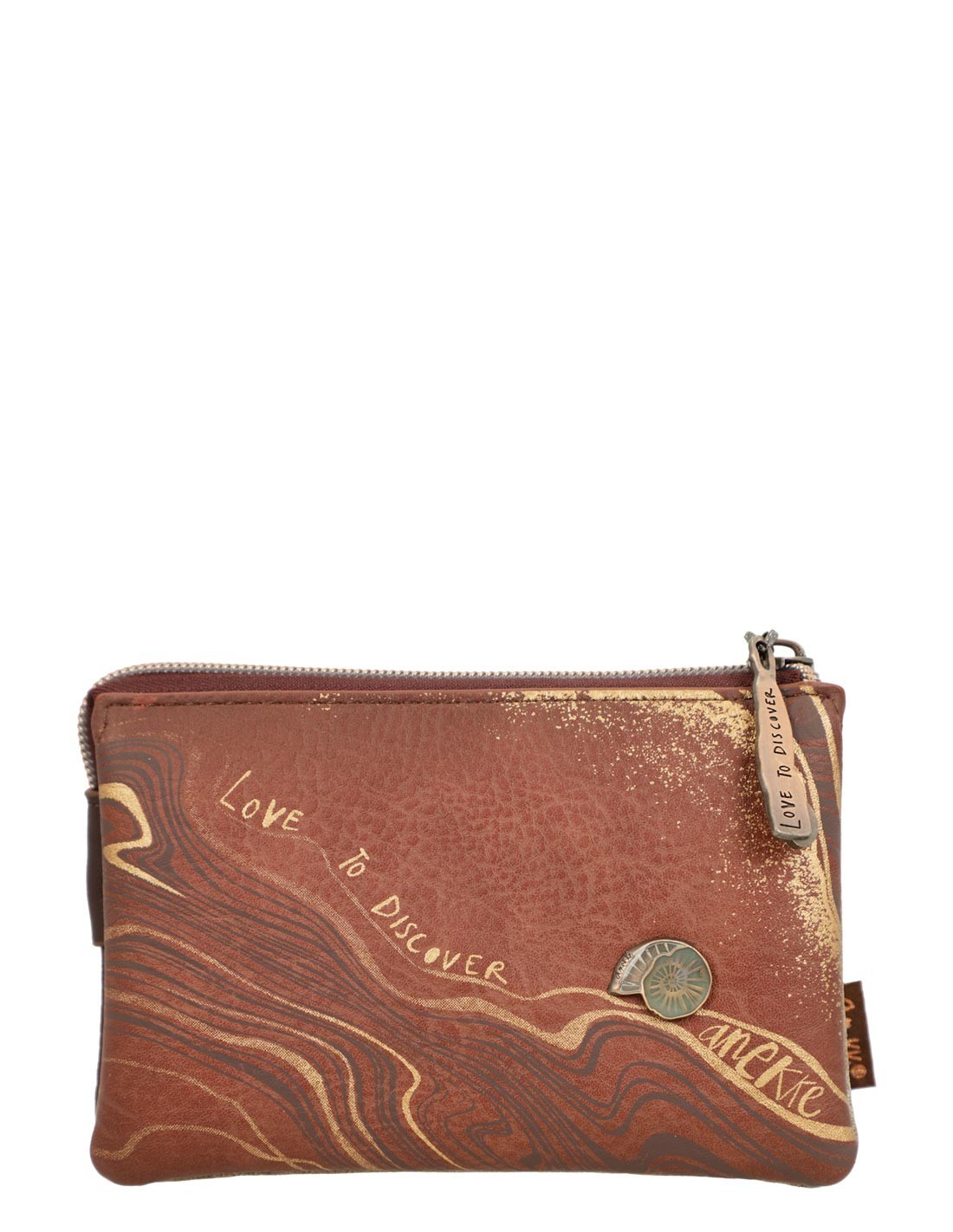 - Un Disseny Inspirador que Et Connecta amb el teu Centre El moneder presenta una fascinant barreja de colors marrons amb tocs de beix, verd i taronja, evocant la bellesa de fòssils, minerals i roques.