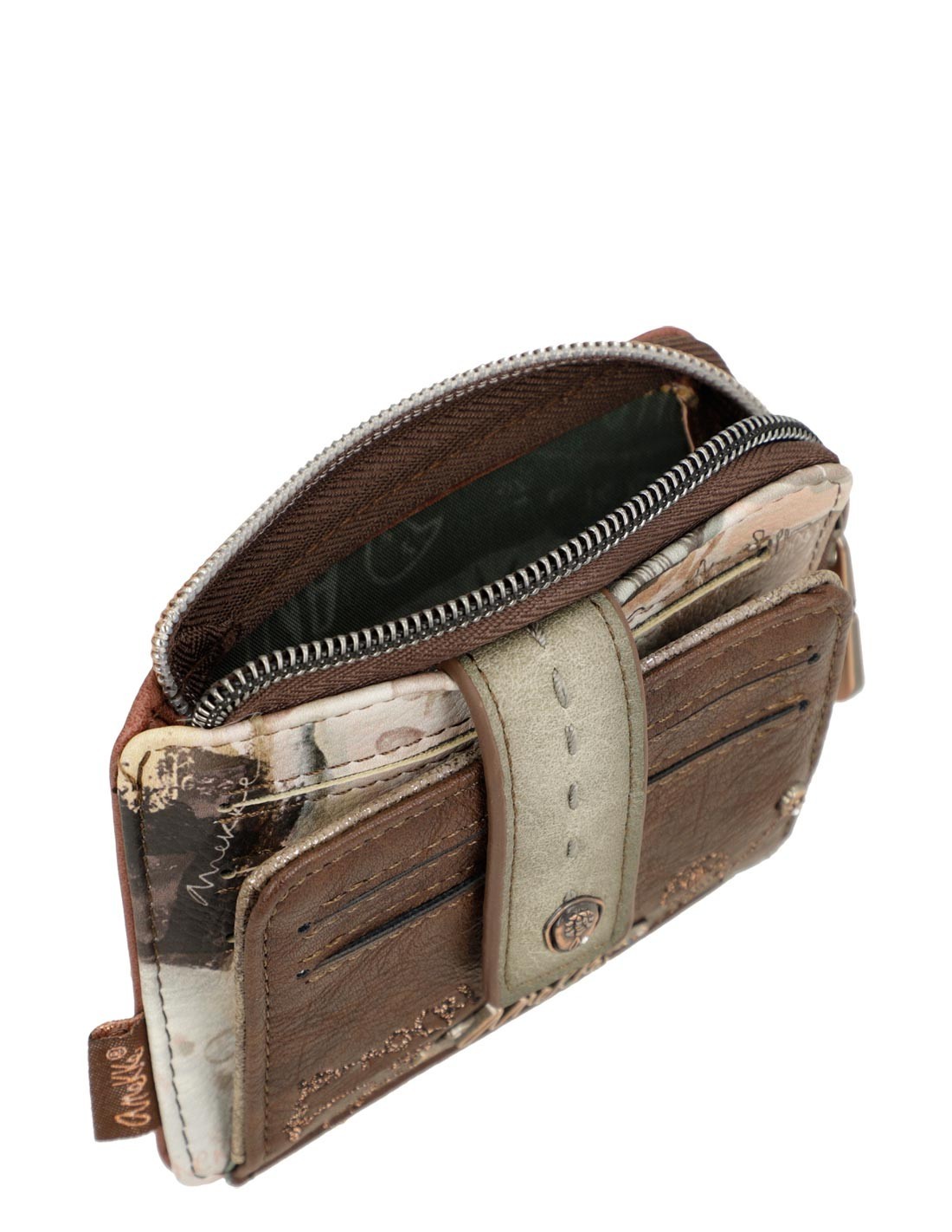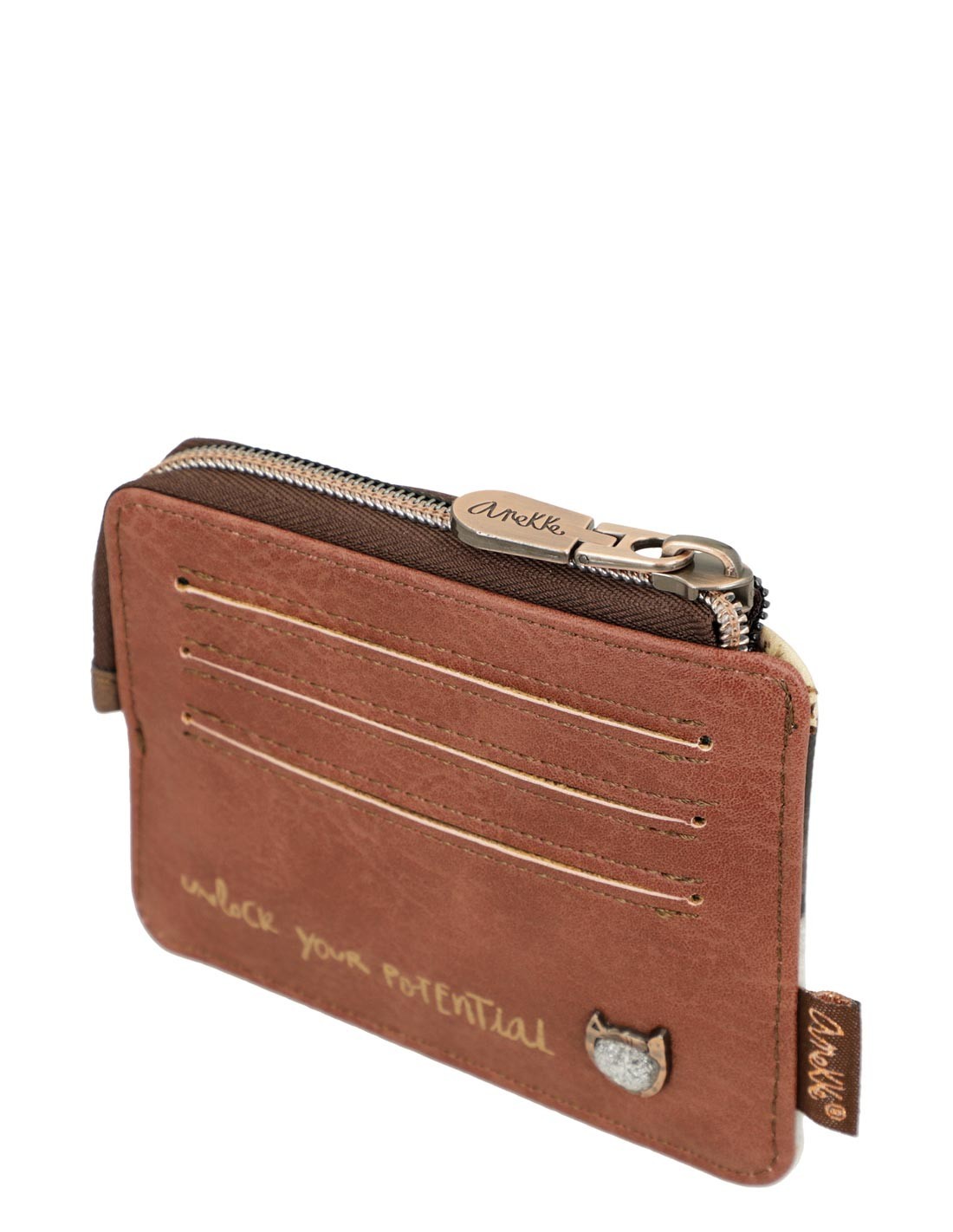- Aquest targeter és de mida petita. Compte amb dos compartiments: un frontal que s'obre mitjançant llengüeta, l'interior del qual alberga espai per a targetes i DNI, i un superior amb cremallera per a monedes.