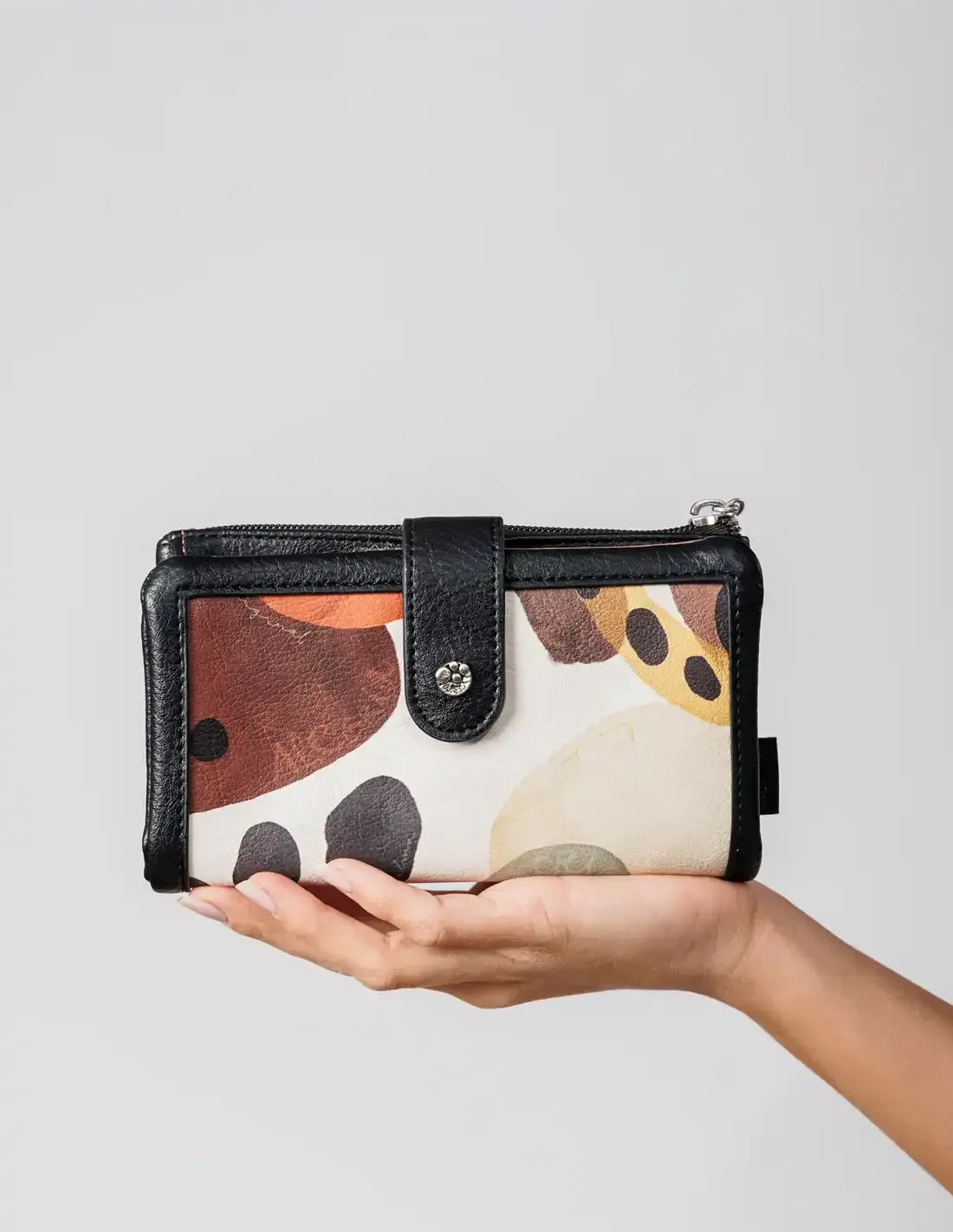 - Organització impecable pel teu dia a dia. Disposa d'un tancament de llengüeta amb botó a pressió, ampli portabillets, cremallera central i espai per a 10 targetes. Tot el que necessites cap, i cada cosa al seu lloc.