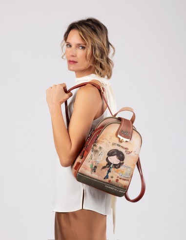 Motxilla Triple Compartiment Anekke - Peace & Love Camel