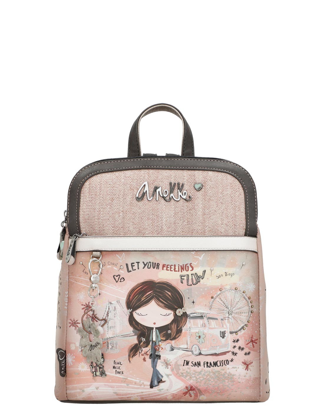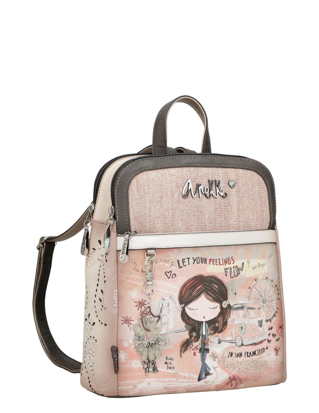 Porta amb tu l'encant i l'elegància amb la Motxilla doble compartiment Anekke - Peace & Love rosa!