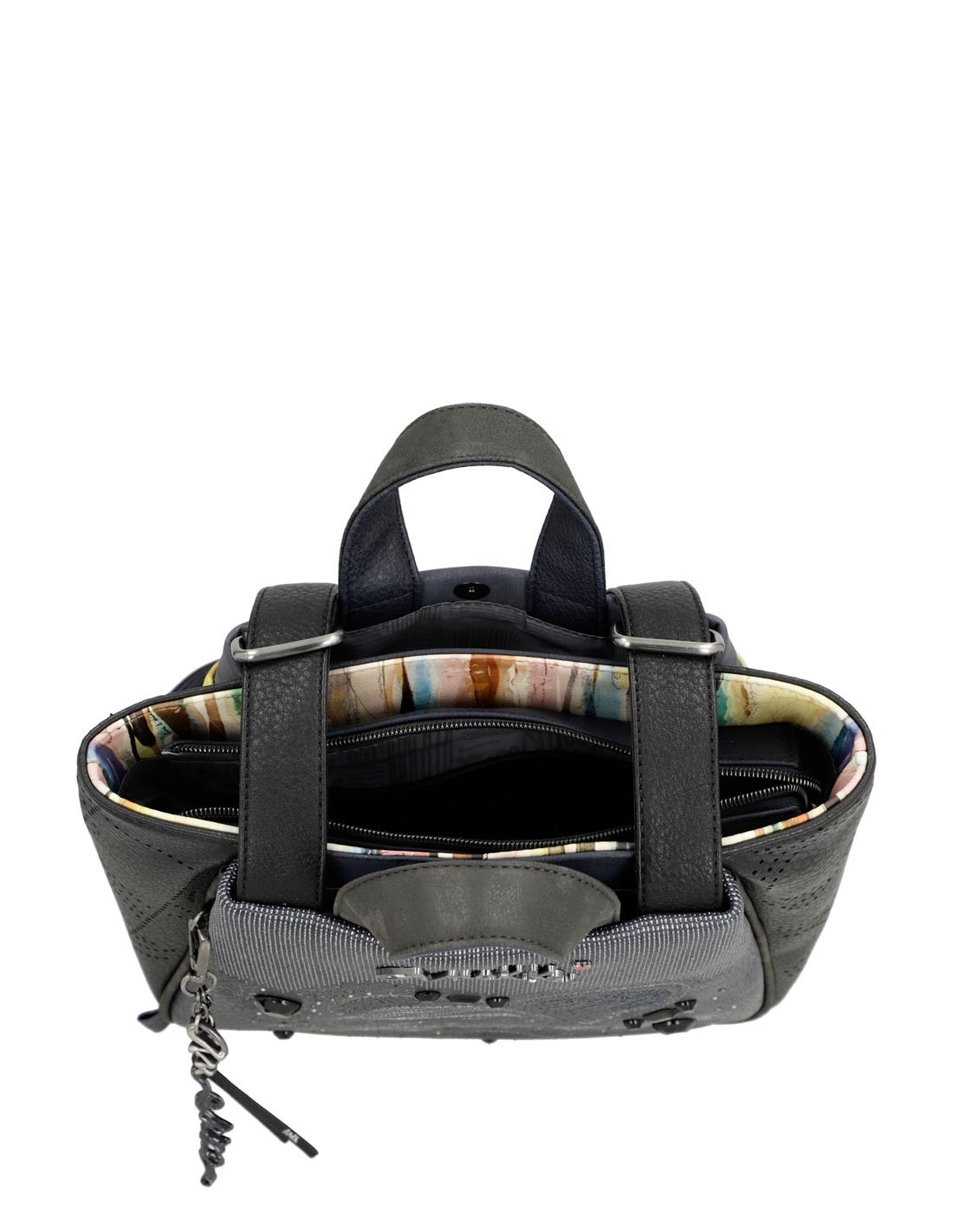 - Té un ampli compartiment central amb tancament de cremallera i butxaques a l'interior.