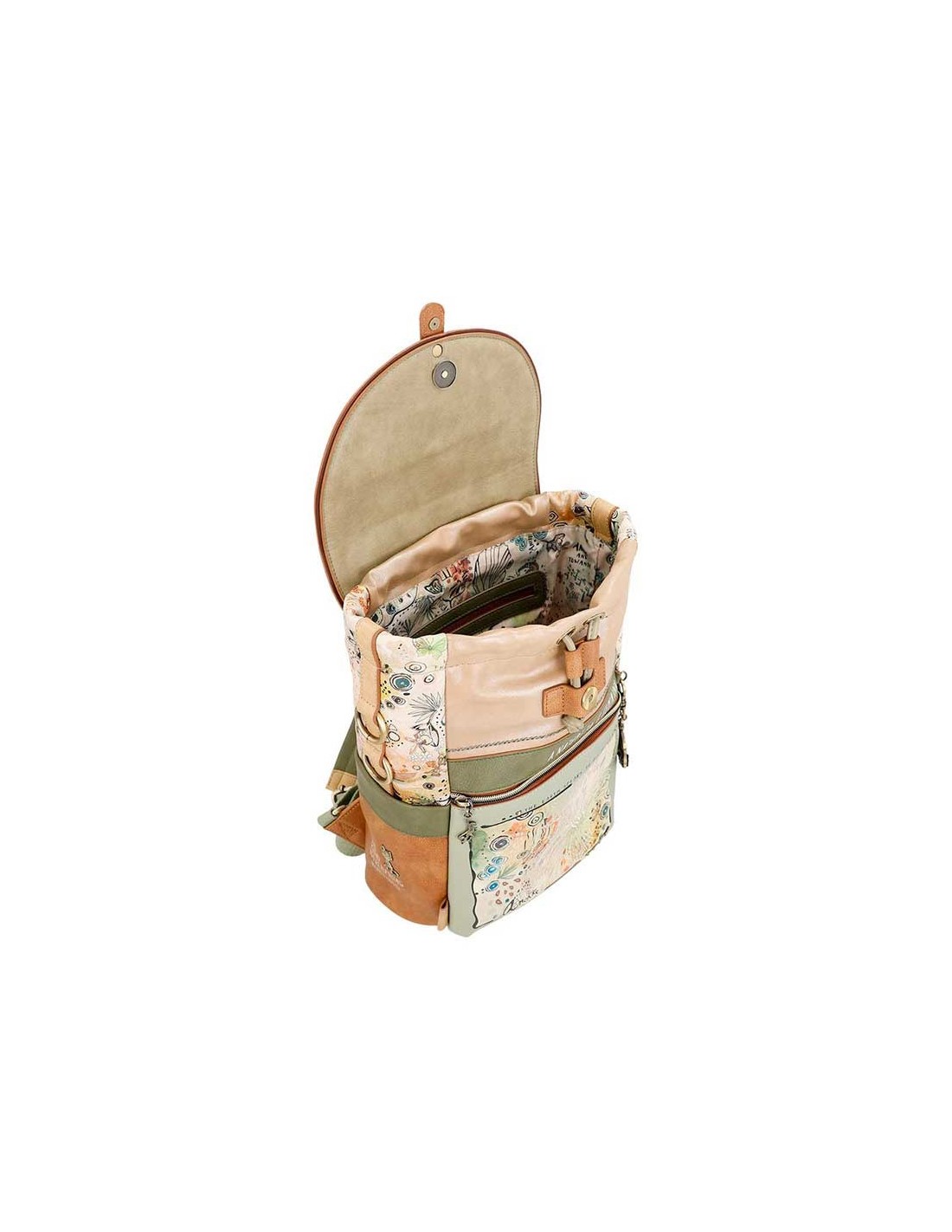 - la part posterior és d'un color llis amb dibuixos en baix relleu compta a més amb una butxaca de cremallera oculta i pegat decoratius i frases impreses. Un model pensat per a tu i replet de detalls com a tatxes daurades, pins en forma de jaguar i un bonic clauer de Anekke amb detalls en color i una papallona nacrada.