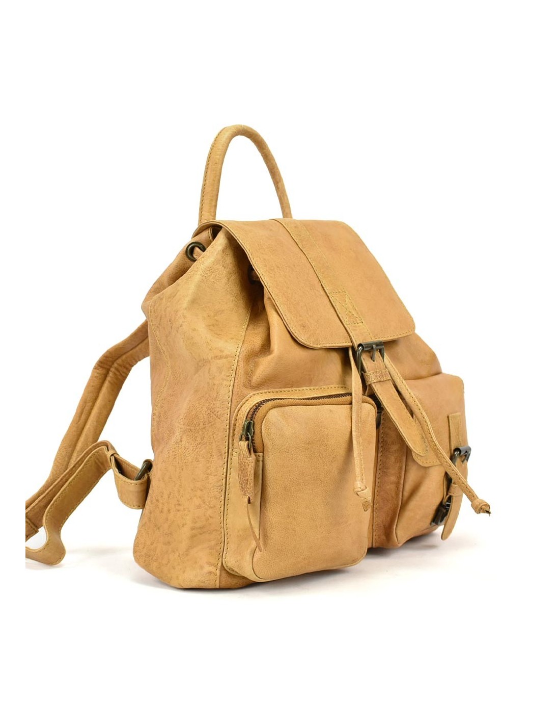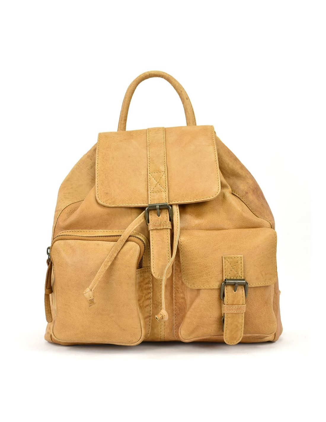 Motxilla amb solapa en pell color mostassa The Twins - Bego