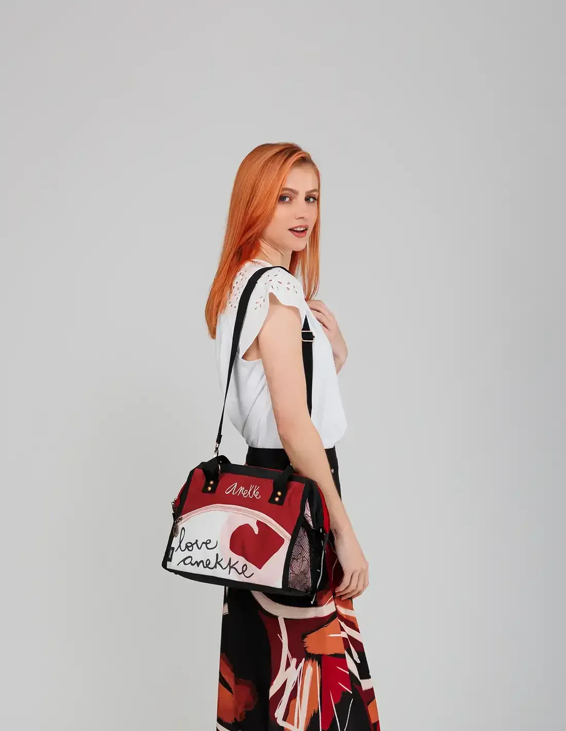 - Comoditat i estil en un sol complement. Bicolor bordeus amb dues anses i una bandolera per portar penjada.