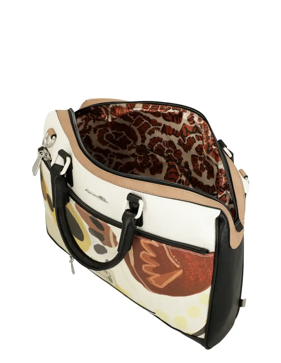 - Compartiment Pc Encoixinat: Tranquil·litat i Protecció Garantides. Porta el teu portàtil de fins a 15’’ totalment protegit gràcies a l’interior encoixinat i folrat amb estampats únics de la col·lecció Alma.