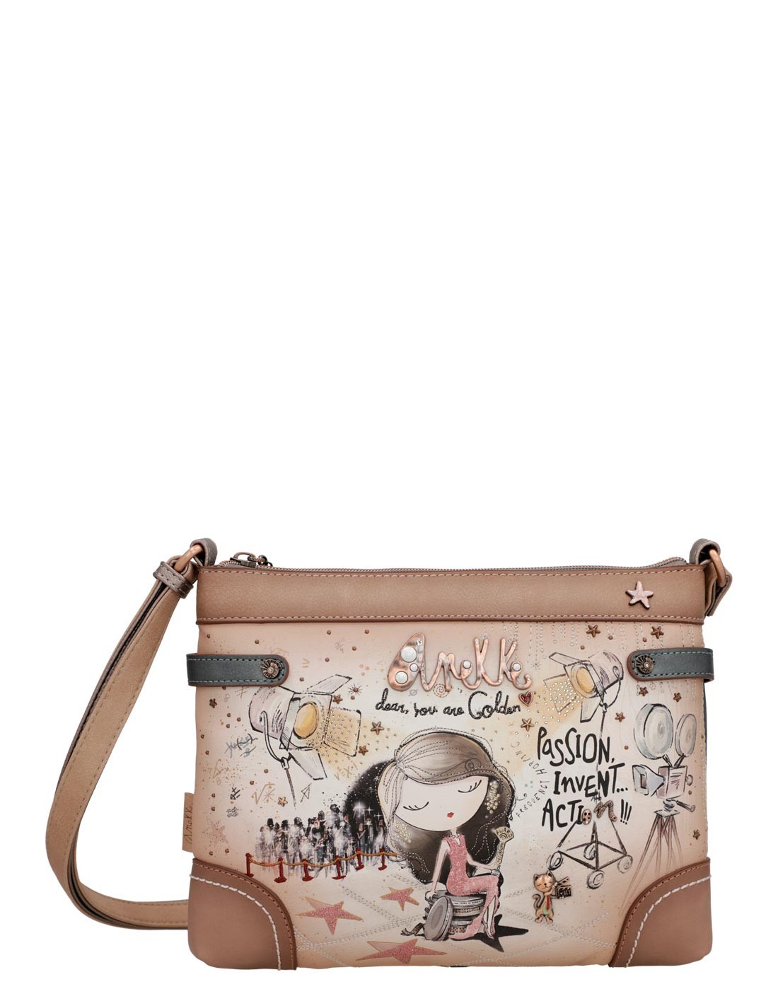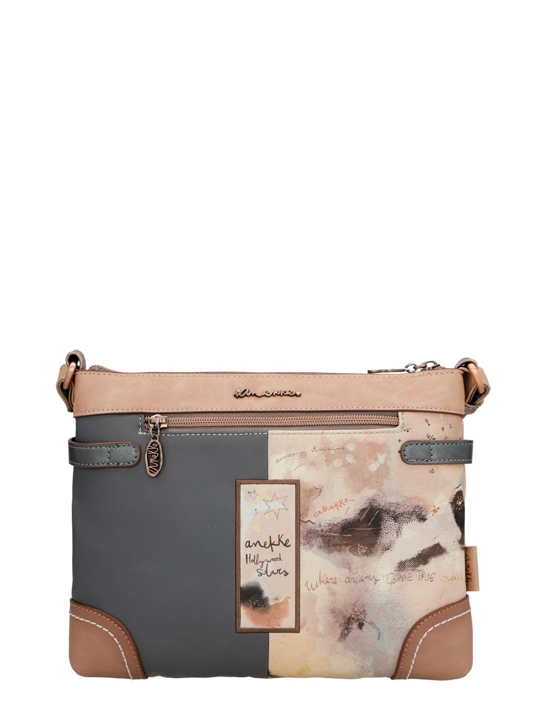 Descubre el accesorio perfecto para llevar contigo el glamour del antiguo Hollywood a donde quiera que vayas. La bandolera rectangular Anekke de la colección Hollywood es ideal para el uso diario, con un diseño en colores beige, gris y marrón, con detalles en rosa y dorado que te harán destacar en cualquier ocasión.