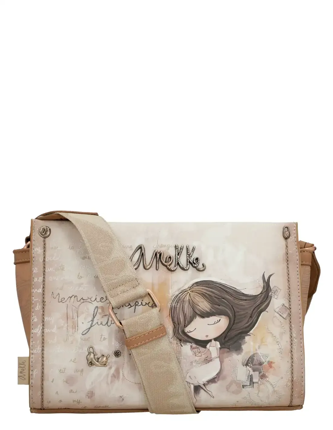 Imagina abrir tu Bandolera Anekke Memories cada mañana y encontrarte con una ilustración inspiradora de Anekke escribiendo sus aventuras, mientras los recuerdos y las frases bordadas elevan tus emociones. Con cada detalle, cada color, cada guiño a colecciones pasadas, sentirás que emprendes tu propio viaje cada vez que salgas de casa. Este bolso no solo te acompaña, cuenta una parte de tu historia y te inspira a crear nuevos momentos inolvidables.