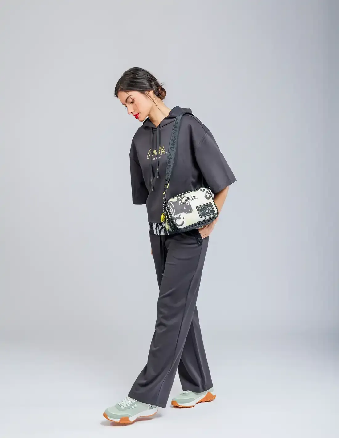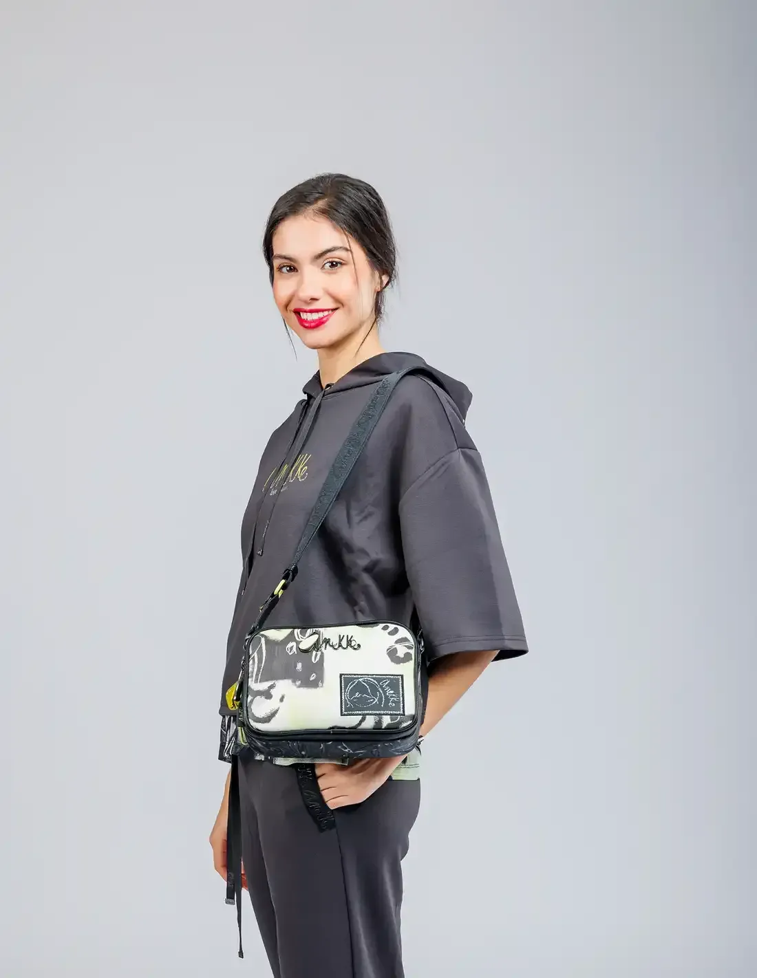 - Compromiso con el medio ambiente. Confeccionada con un 80% de materiales reciclados y con el sello de Control Union Certifications B.V., esta bandolera es sinónimo de sostenibilidad.