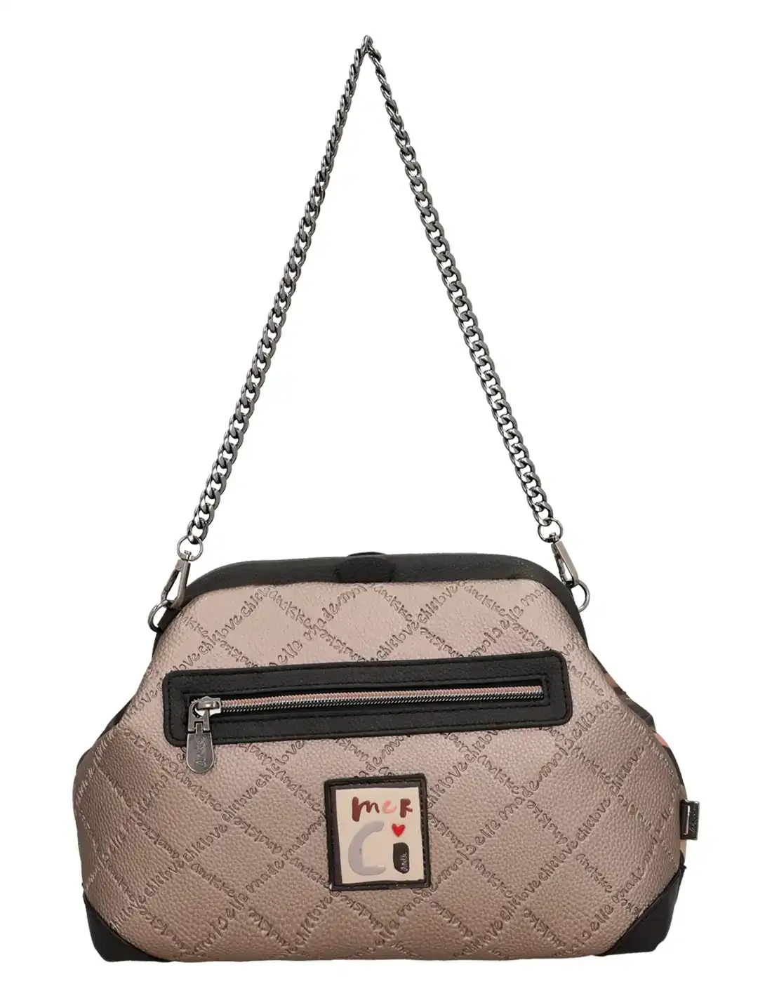 - Versatilidad total. Asa bandolera extraíble y regulable + asa metálica de eslabones para llevarla como más te guste.