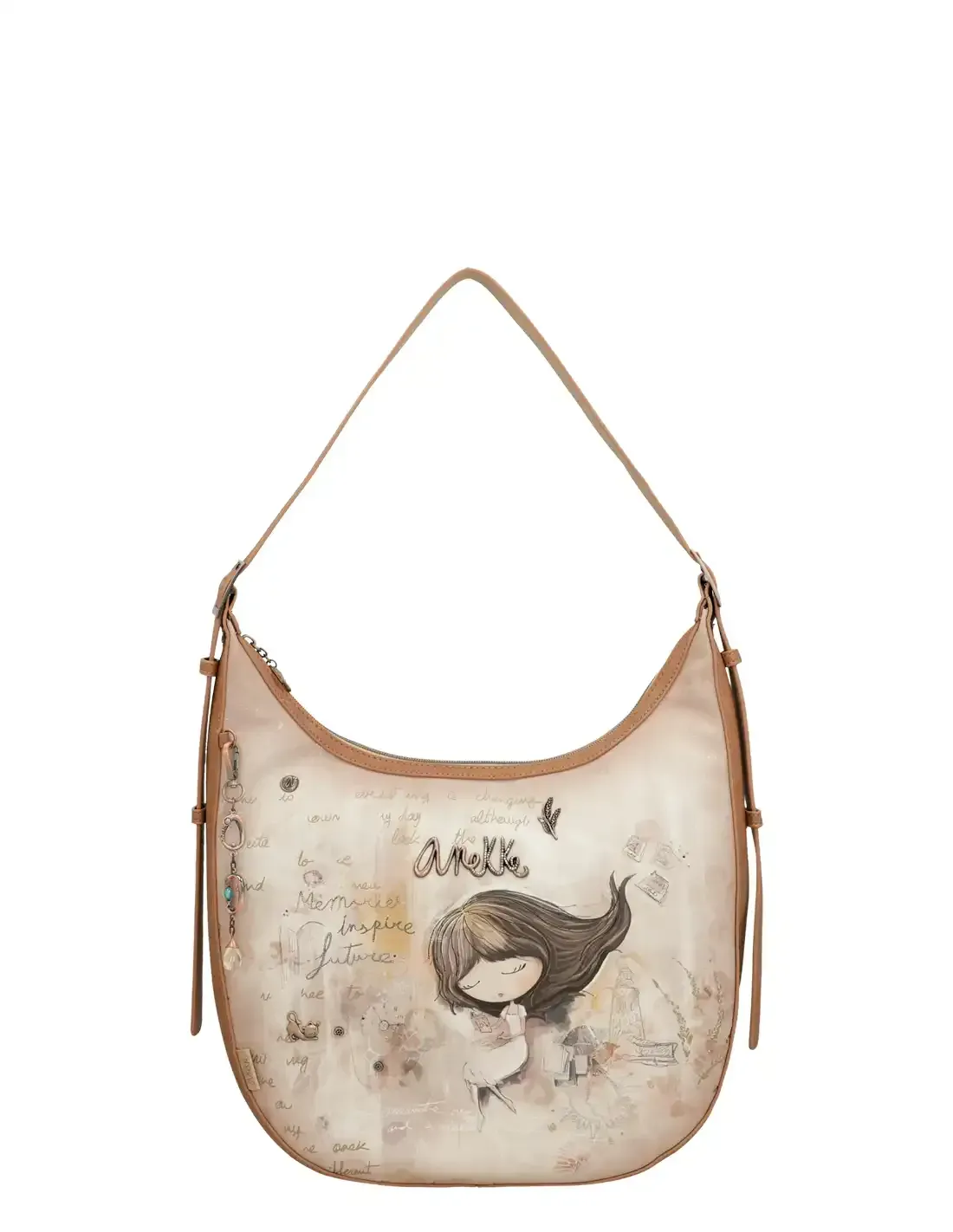 Anekke Memories no es solo tendencia: es un recuerdo vivo. Imagínate abriendo este bolso y encontrando una pequeña ilustración de Anekke sentada, escribiendo en su diario los recuerdos de sus viajes y grandes momentos. Cada costura, cada detalle, cada frase bordada (“Memories inspire future”) hablan de experiencias pasadas y sueños futuros. Este bolso se convertirá en tu amuleto diario, inspirándote a crear y atesorar nuevos recuerdos allá donde vayas.