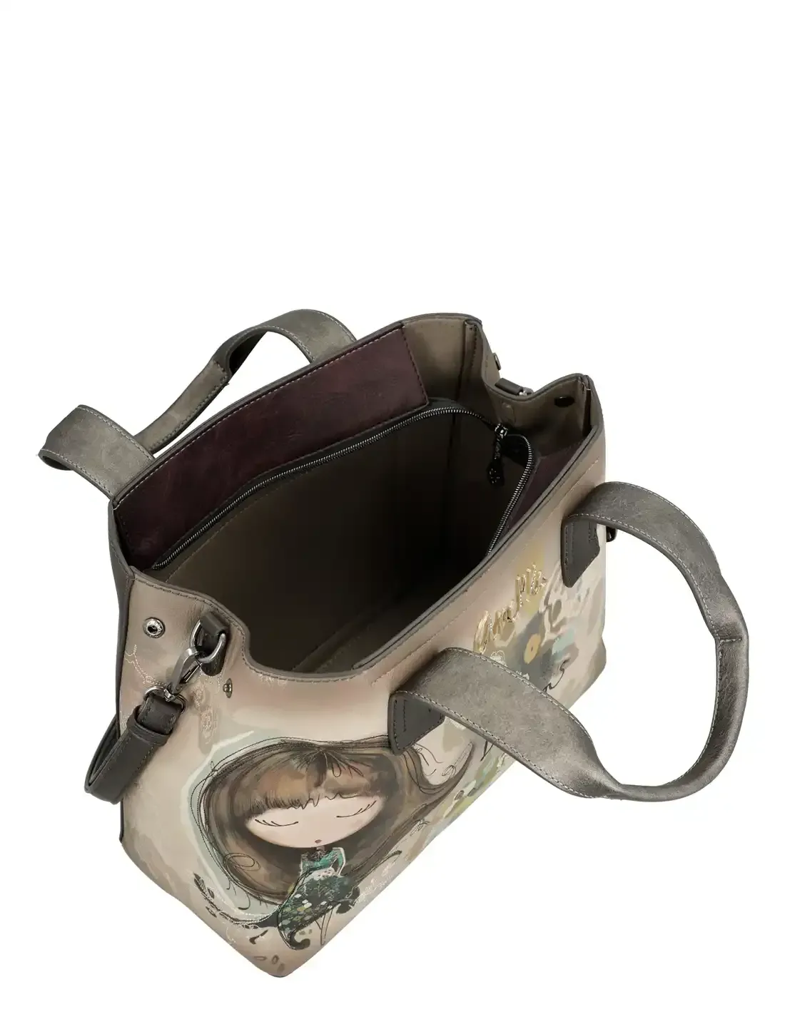 - Tipología y género. Tipología: Bolso. Modelo: Bolso de mano tipo doctor. Género: Mujer. Marca: Anekke. Colección: Real. Color principal: Gris (taupe con detalles en gris, beige y verde).