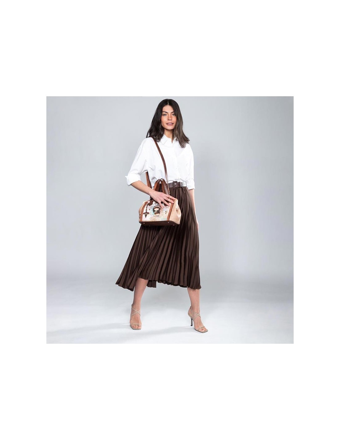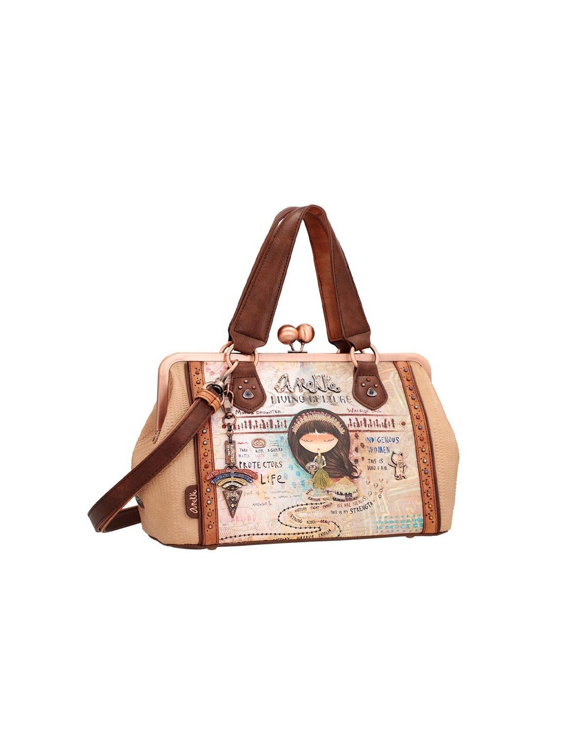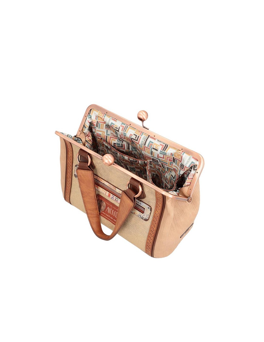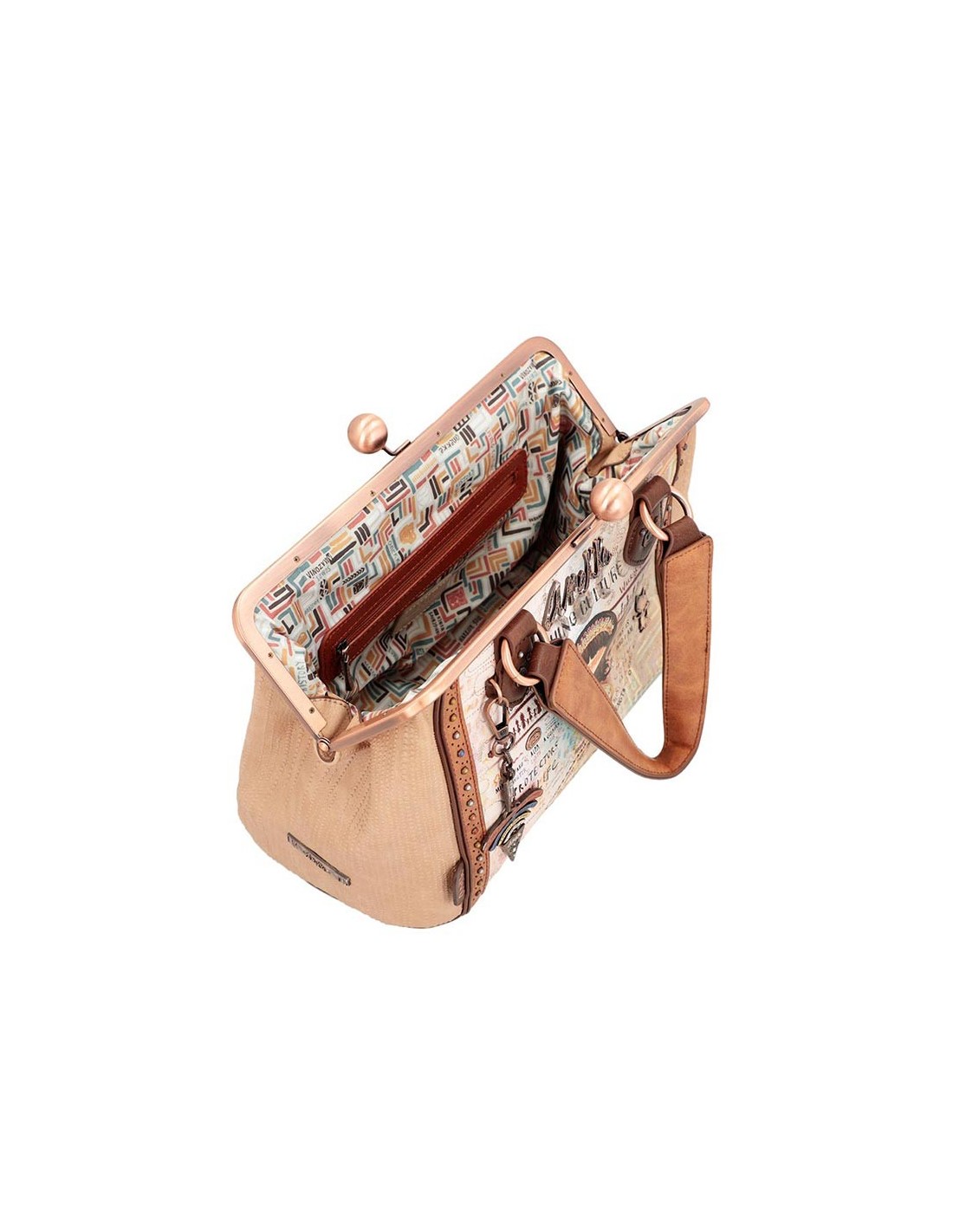 Este bolso, lleno de detalles cautivadores, te conquistará desde el primer momento. Sus tonos marrones, beige y rojizos, combinados con acentos en ocre y azul, evocan la tierra vibrante del Amazonas.