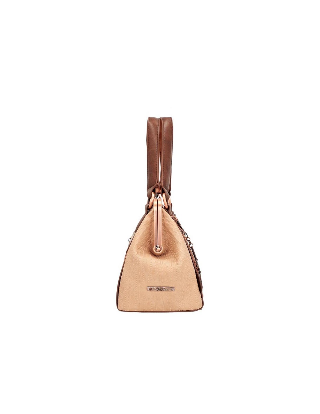 Los laterales en tono crudo con textura artesanal contrastan con la parte trasera lisa en un suave tono dorado.