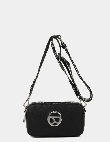 Esta bandolera es la combinación perfecta entre elegancia y casualidad. Está elaborada en polipiel de alta calidad en un elegante color negro, ideal para completar cualquier look. Su asa bandolera de algodón negro con el nombre de la marca en blanco, es ajustable para mayor comodidad.