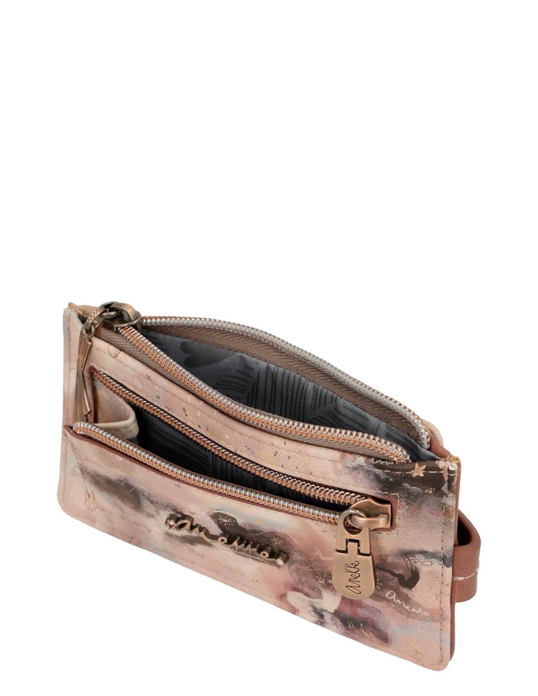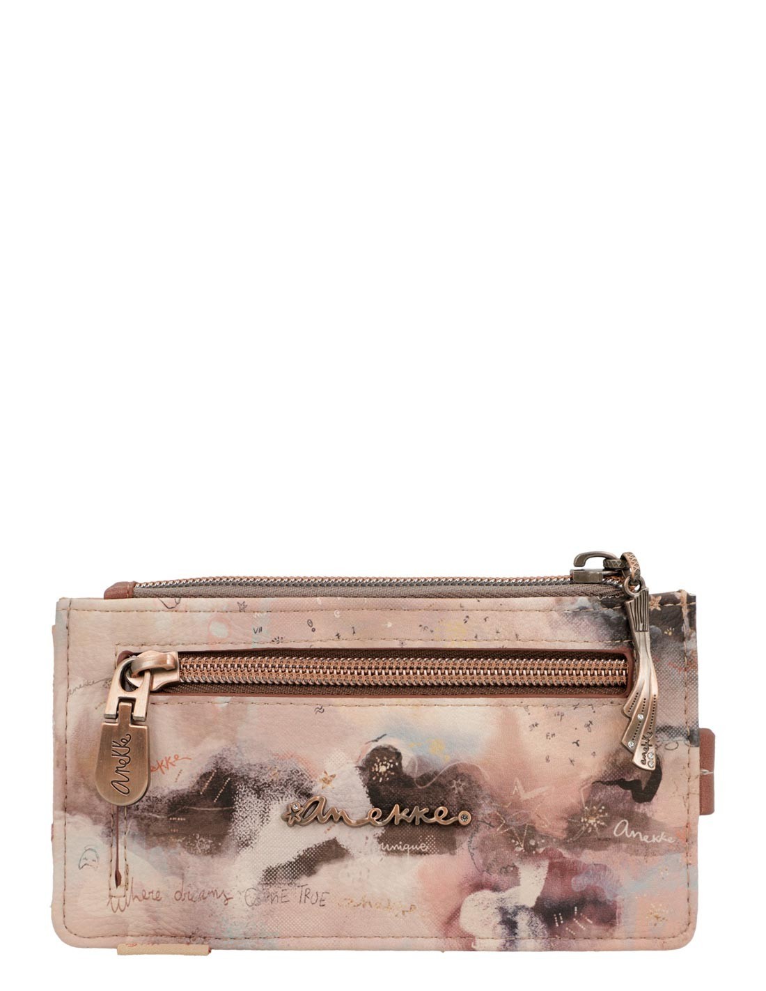 - Diseño elegante y original: Con el exclusivo print de Anekke en tonos beige, nude y marrón, este tarjetero no solo es funcional, sino también un accesorio de moda que complementará tu estilo único.