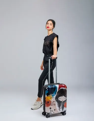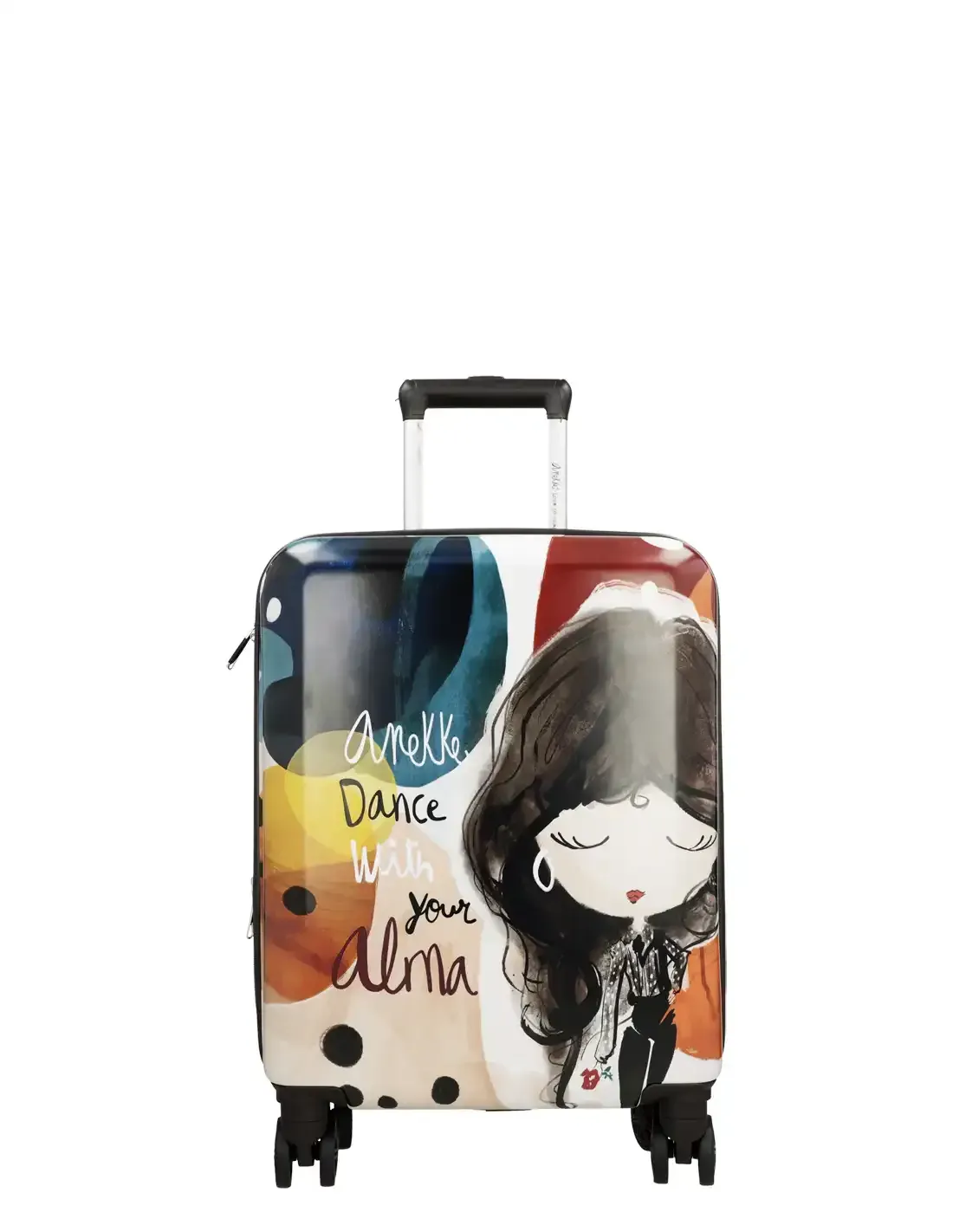 Con la ilustración de Anekke sosteniendo una flor en su mano y la vestimenta que homenajea a los toreros y bailarinas de flamenco, esta maleta no solo es funcional, sino un tributo vivo al arte y cultura de España. Embárcate en un viaje donde cada detalle te recuerda la conexión con tus raíces, bailando con tu alma al ritmo de una tradición reinterpretada.