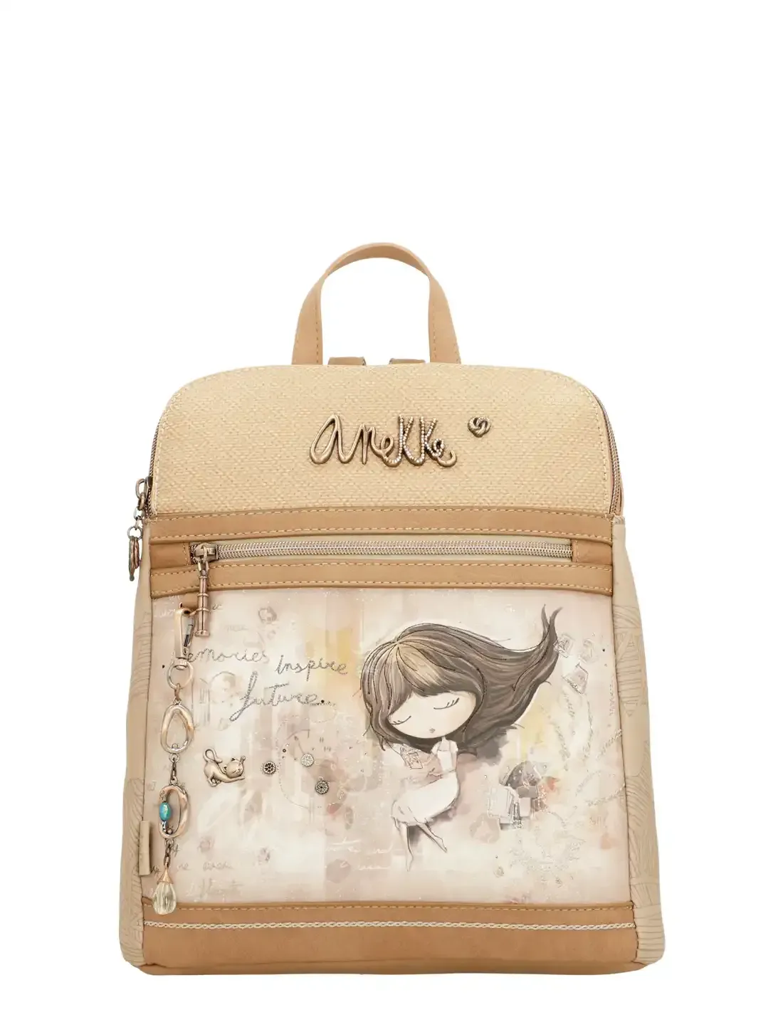 - Diseño con Historia y Detalles Únicos que Dejan Huella. Estampado exclusivo que rinde homenaje a las colecciones míticas de Anekke: Mediterranean, Universe, Travel y Jane, con bordados, pines y un llavero decorativo. Cada elemento narra un recuerdo y convierte cada uso en una experiencia emocional.
