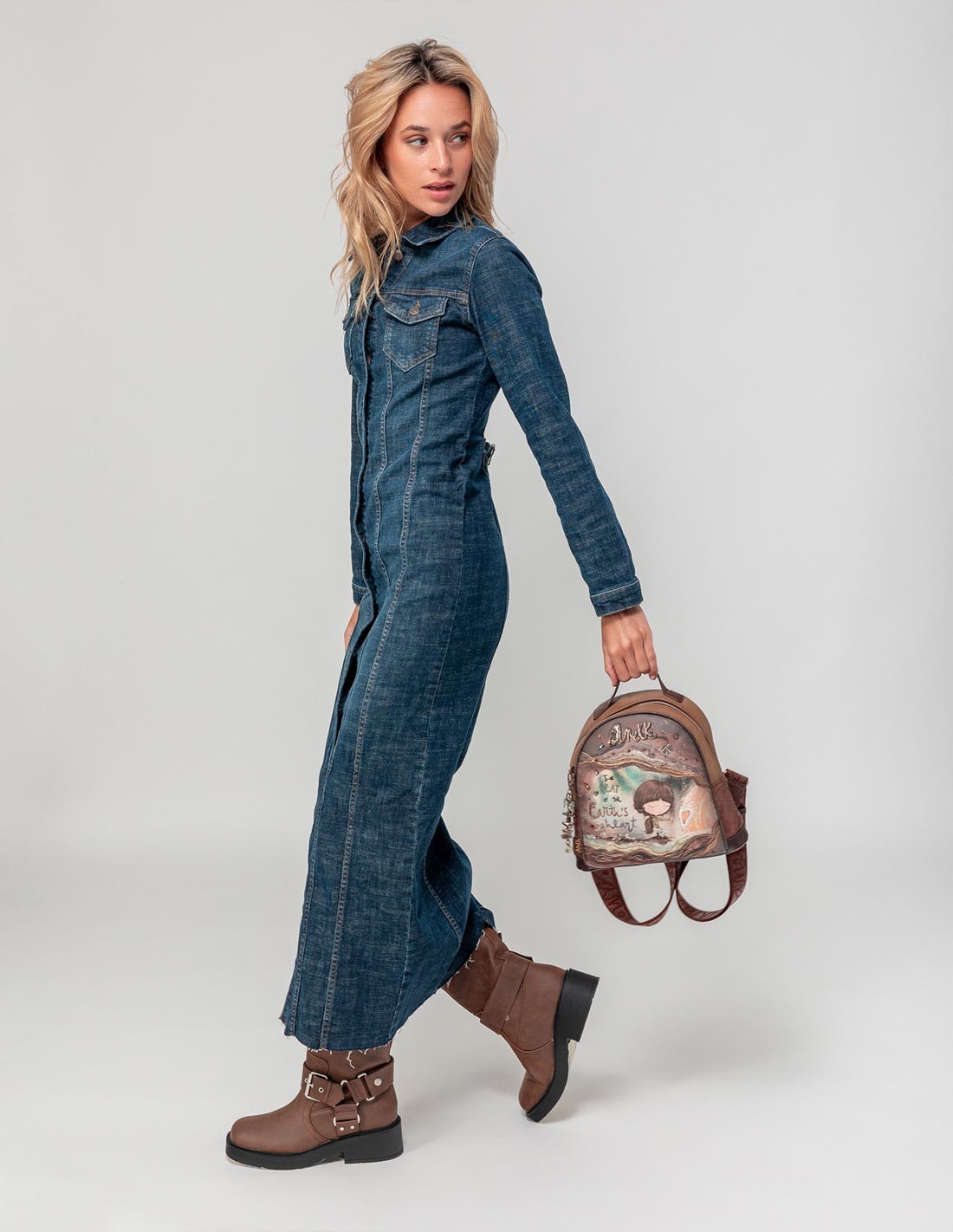 - La parte de delante trae un bonito print de Anekke. Su departamento principal se accede por la parte superior, y en su interior abriga un bolsillo abierto y otro con cierre de cremallera.