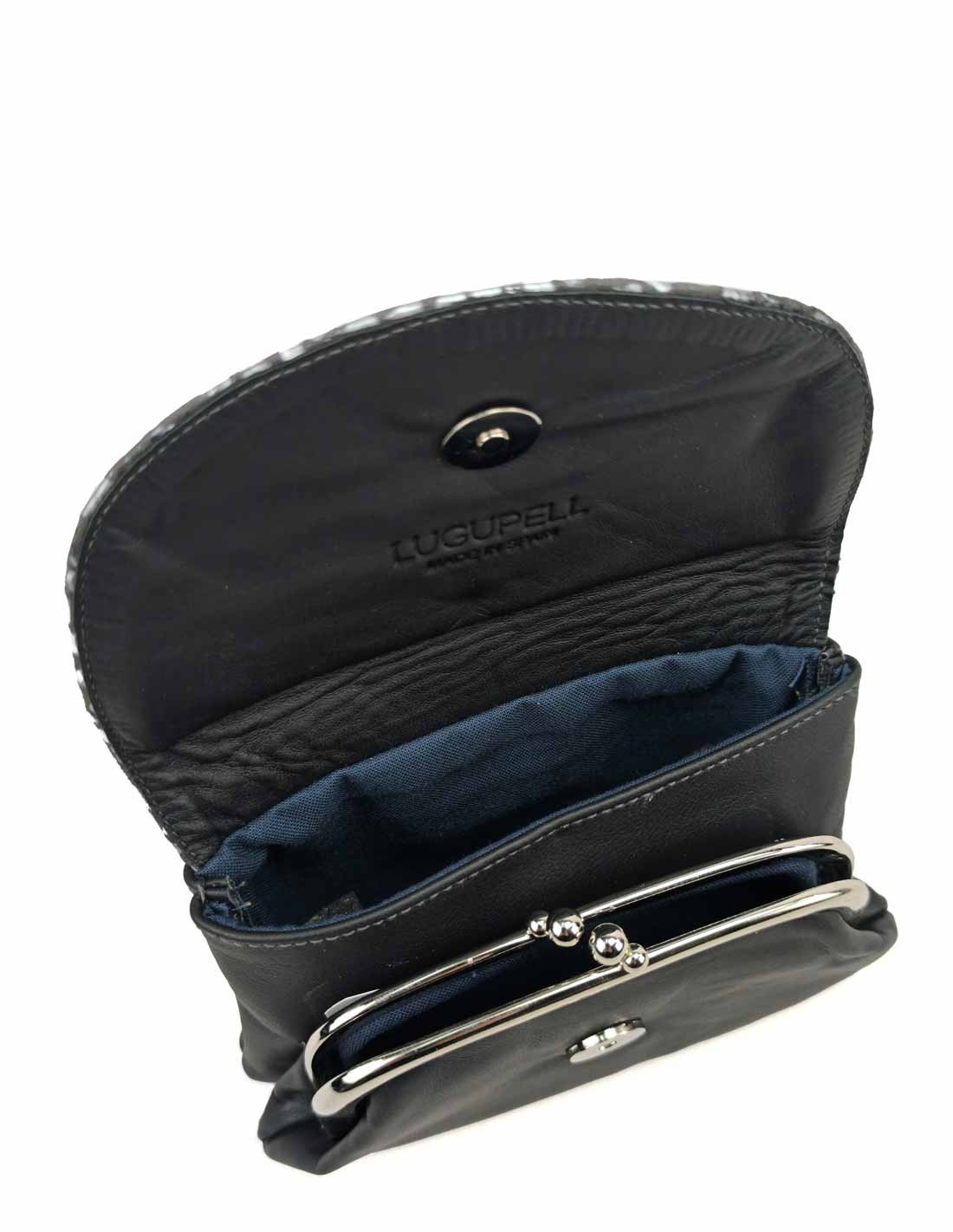Monedero con solapa Lugupell de la colección Gaudí Silver Un portamonedas de estilo retro que está lleno de encanto. Está elaborado en piel de cordero de color gris. Tiene un tacto extra suave además es super ligero y práctico. En la parte de delante dispone de un departamento con cierre de boquilla para las monedas; Un bolsillo interior ideal para meter tarjetas; Departamento para billetes o papeles; Todo el monedero está cerrado con una solapa imantada inspirada en el mosaico de Gaudi en color plateado Cuenta además con cremallera en la parte trasera. Este monedero se destaca sobre todo por la calidad en su estampado y acabado, está todo hecho a mano por los mejores artesanos de nuestro país