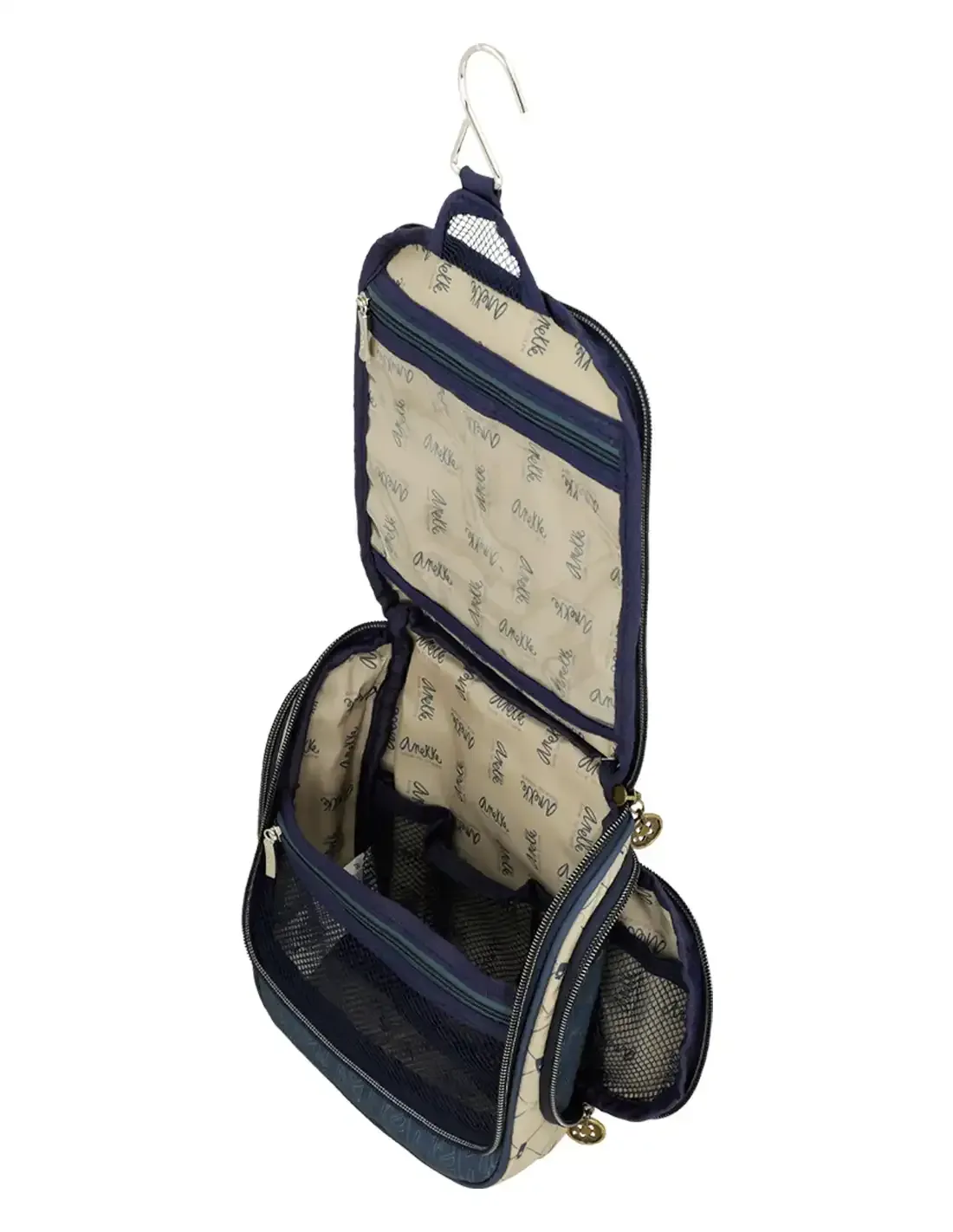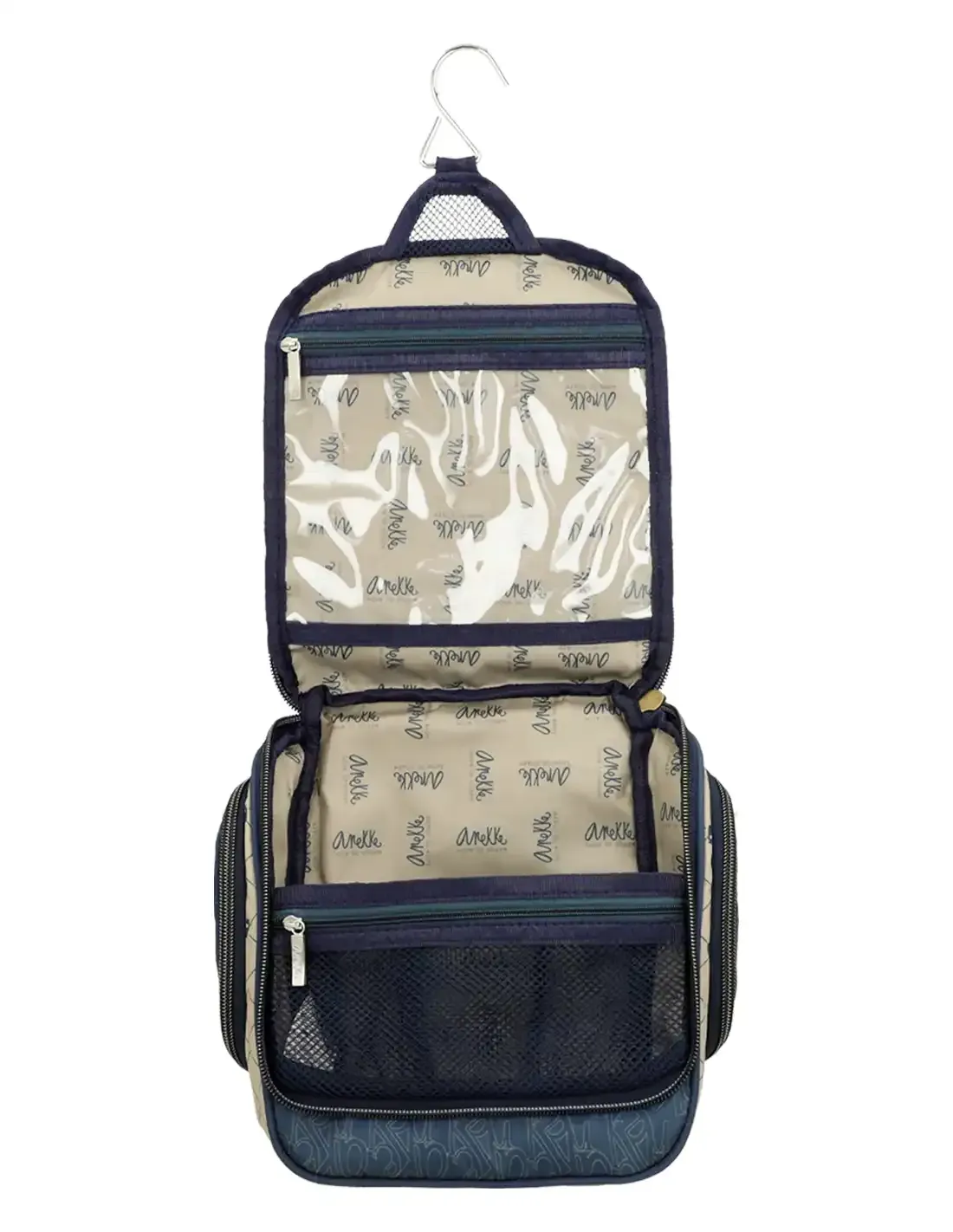 El Neceser de Viaje Anekke Studio es tu solución elegante y práctica para mantener tus esenciales de belleza y cuidado personal siempre organizados. Olvídate del desorden en la maleta: su tamaño grande, los múltiples compartimentos y el gancho para colgar te permiten acceder a todo con facilidad, ya sea en el hotel, el aeropuerto o el gimnasio.