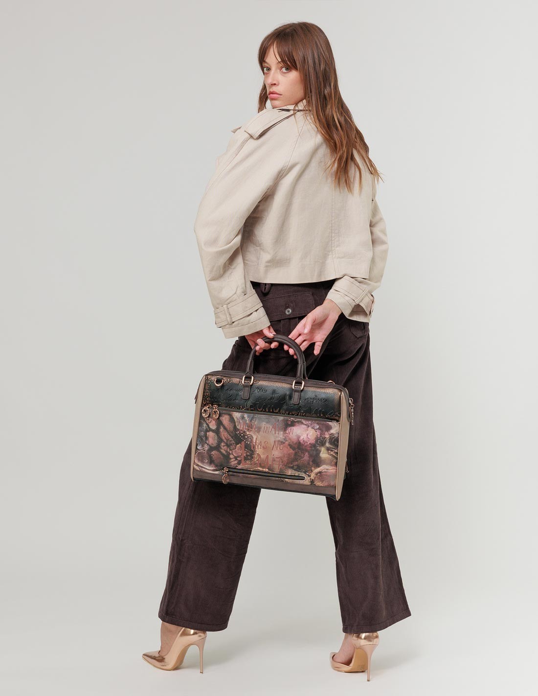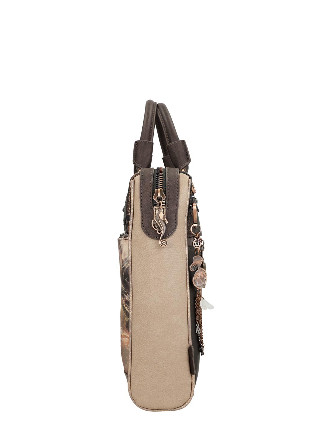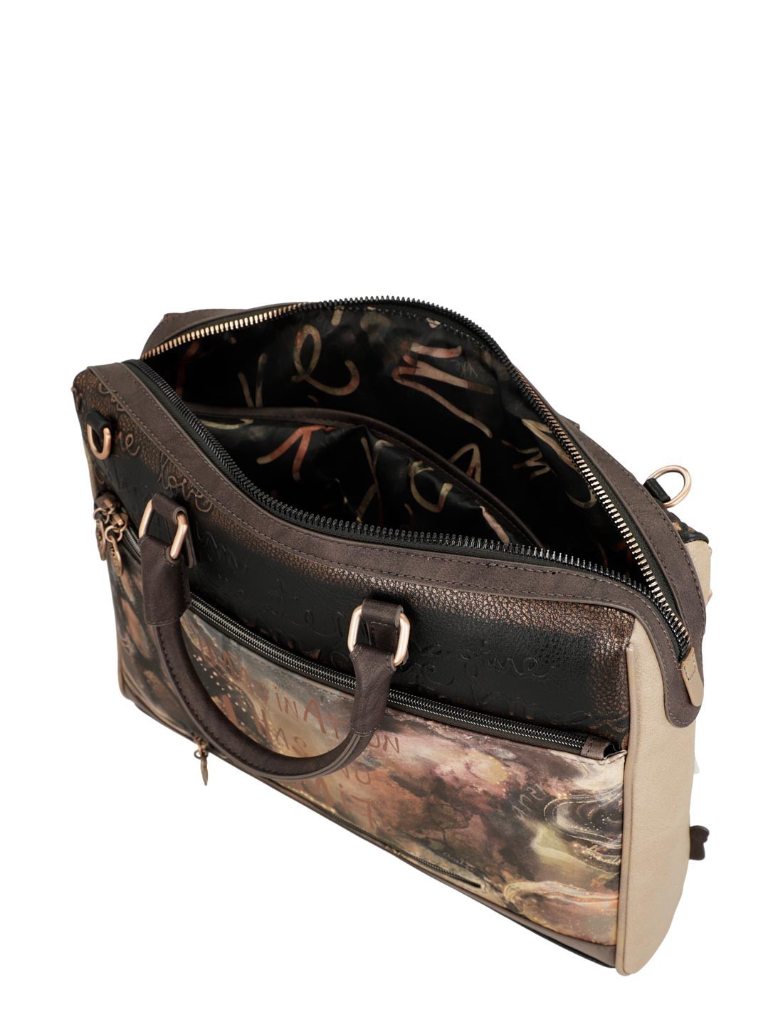 - Este precioso maletín de tonalidad marrón, con detalles en negro y beige, y un toque metalizado es ideal para ir a trabajar o estudiar ¡Te encantará!