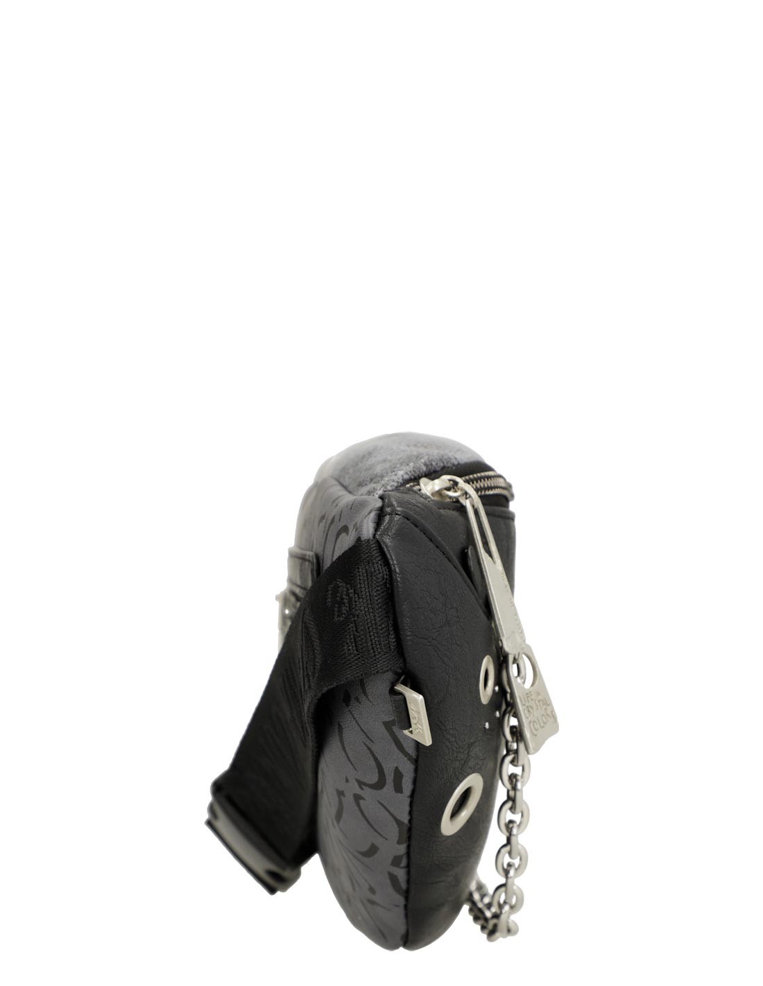 - Também conta com fechos de correr no seu exterior, um na parte frontal, com um bonito detalhe de elos e outro na parte traseira.