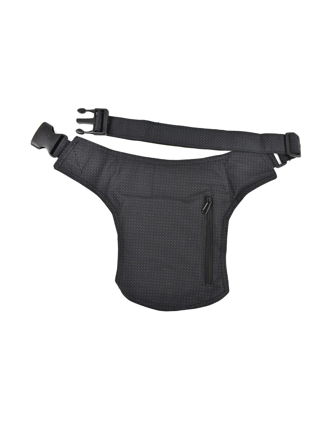 Experimente o conforto e o estilo com a nossa Bolsa de Cintura Unissexo, confeccionada em lona preta de alta qualidade e decorada com pequenas "vírgulas" brancas. Este acessório é ideal para as suas caminhadas ou eventos ao ar livre.
