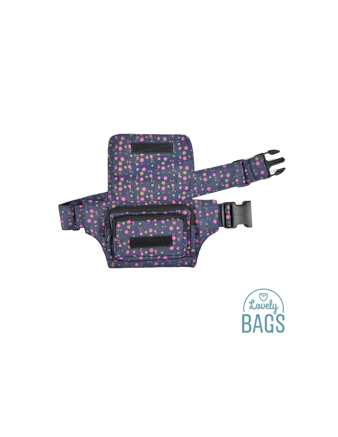 Fanny pack feminina com aba feita de jeans com estampagem floral