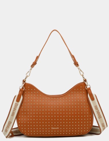Esta mala de ombro da coleção Vera da Binnari é o complemento perfeito para realçar o seu estilo. Elaborado em pele sintética de alta qualidade e ornamentado com tachas decorativas em cor dourada clara, esta mala a tiracolo meia lua não só é prática, como também é estilosa e elegante.