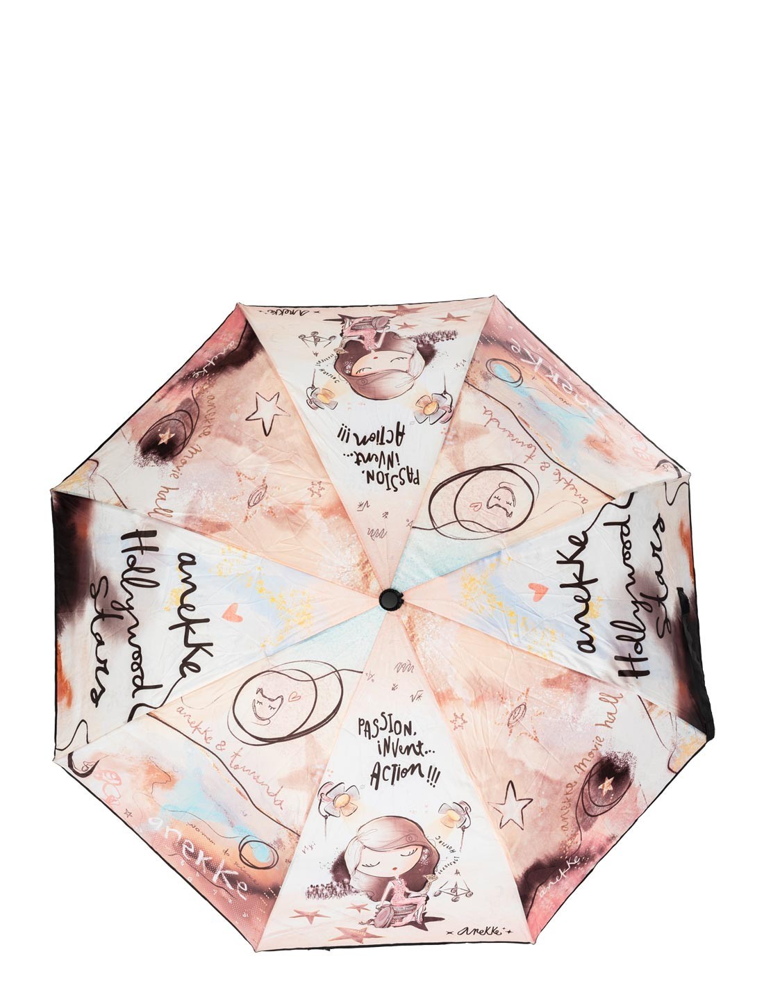 - Arte na tua Mão: Inspirado na diva Anekke de Hollywood, o seu elegante design com detalhes em nude, castanho, rosa e dourado, embeleza os teus dias chuvosos, homenageando a inesquecível Hedy Lamarr.