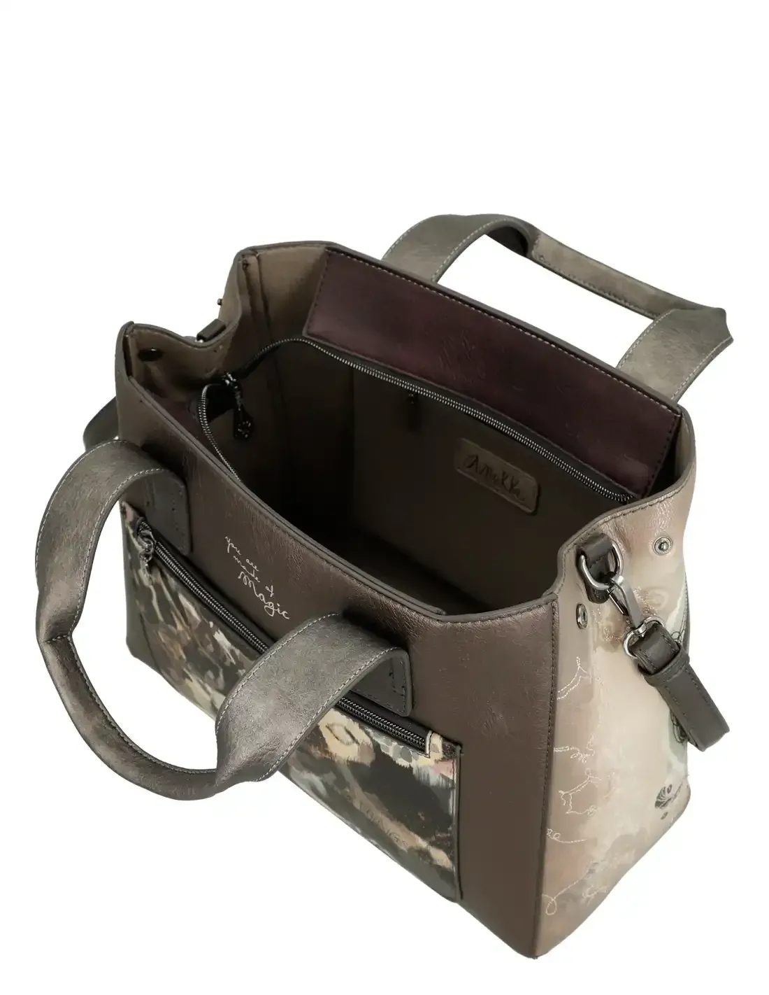 - Tipologia e género. Tipologia: Mala. Modelo: Mala de mão tipo doctor. Género: Mulher. Marca: Anekke. Coleção: Real. Cor principal: Cinzento (taupe com detalhes em cinzento, bege e verde).
