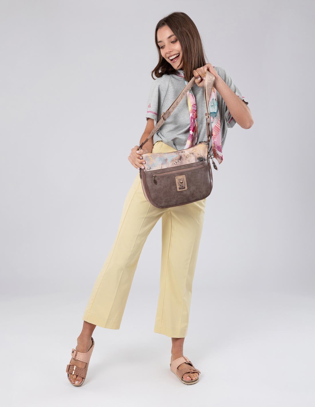 - A alça é uma tiracolo larga de algodão, que se pode ajustar a diferentes comprimentos.