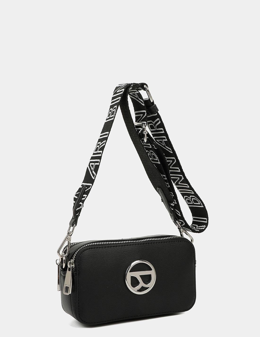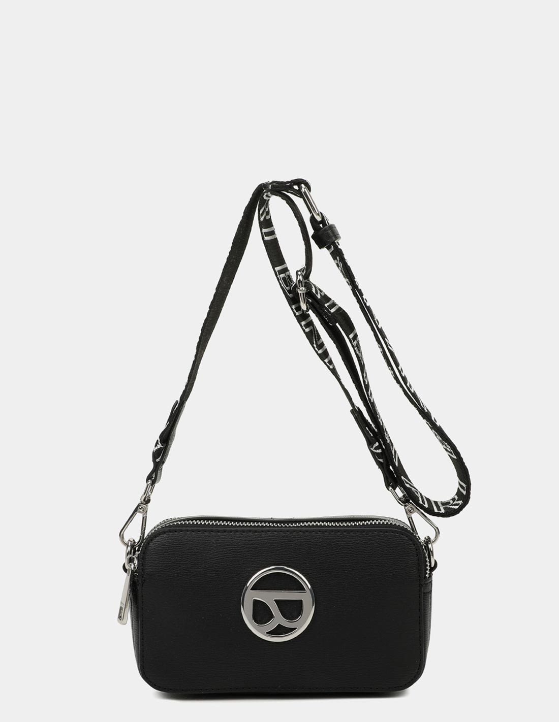Esta bolsa a tiracolo é a combinação perfeita entre elegância e casualidade. Está elaborada em polipele de alta qualidade numa cor preta elegante, ideal para completar qualquer look. A sua alça a tiracolo de algodão preto com o nome da marca a branco, é ajustável para maior conforto.