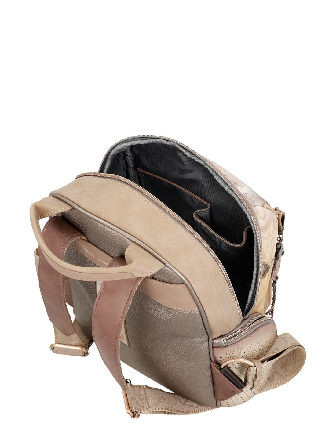 - O seu amplo compartimento principal na parte superior abre-se mediante fecho éclair e, no interior, encontrará bolsos organizadores perfeitos para os seus pertences.