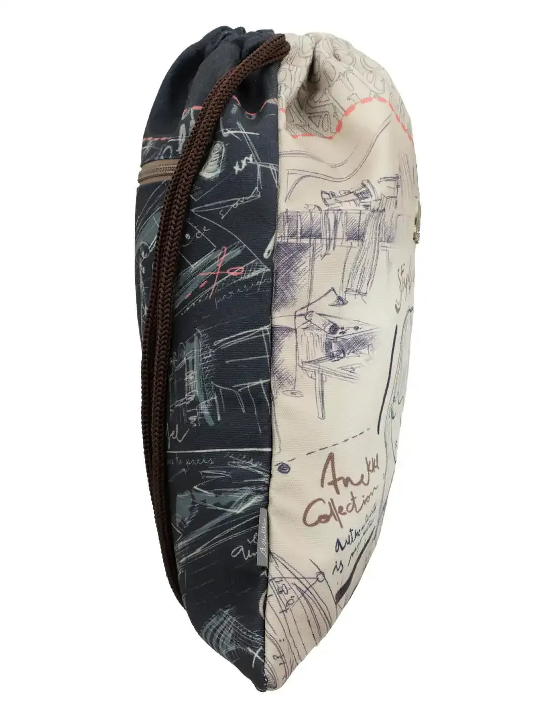 Escolhe uma mochila que fale de ti. A Mochila Saco Anekke Studio, da coleção Mademoiselle, resolve o dilema diário entre estilo e conforto: leve, segura e com um design estampado único que combina bege e azul. Perfeita para levar o essencial com organização e um toque artístico em cada saída.