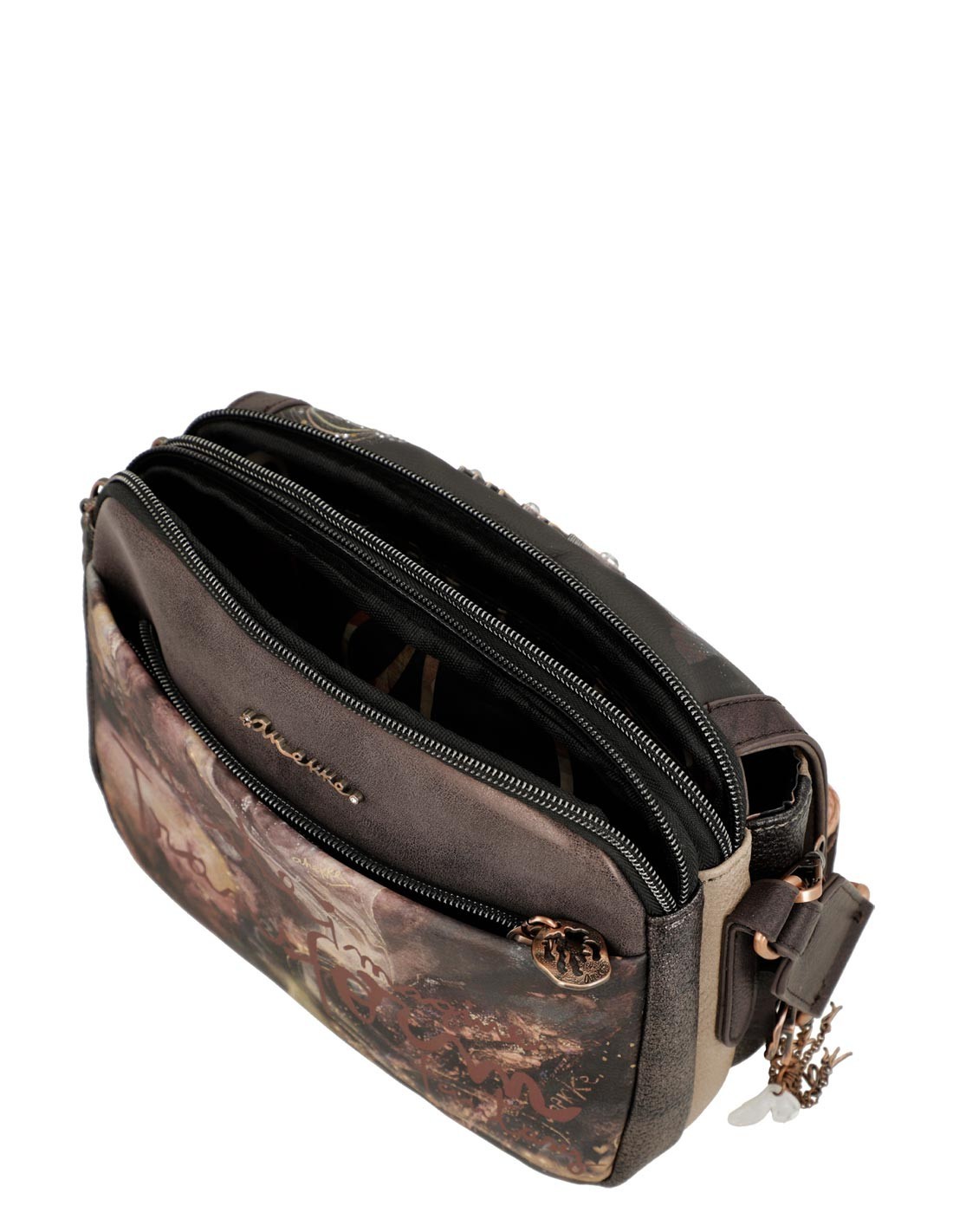 - Design Inspirador Com um tom castanho enriquecido com detalhes metalizados, esta tiracolo transportá-lo-á ao mundo mágico da viagem ao Centro da Terra de Anekke. Os toques de bege e preto acrescentam um contraste sofisticado e moderno.