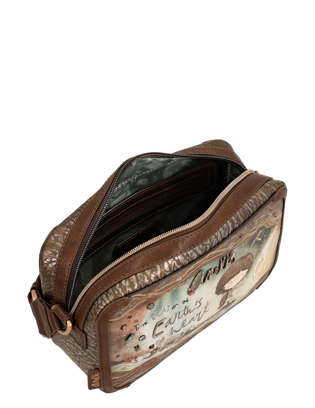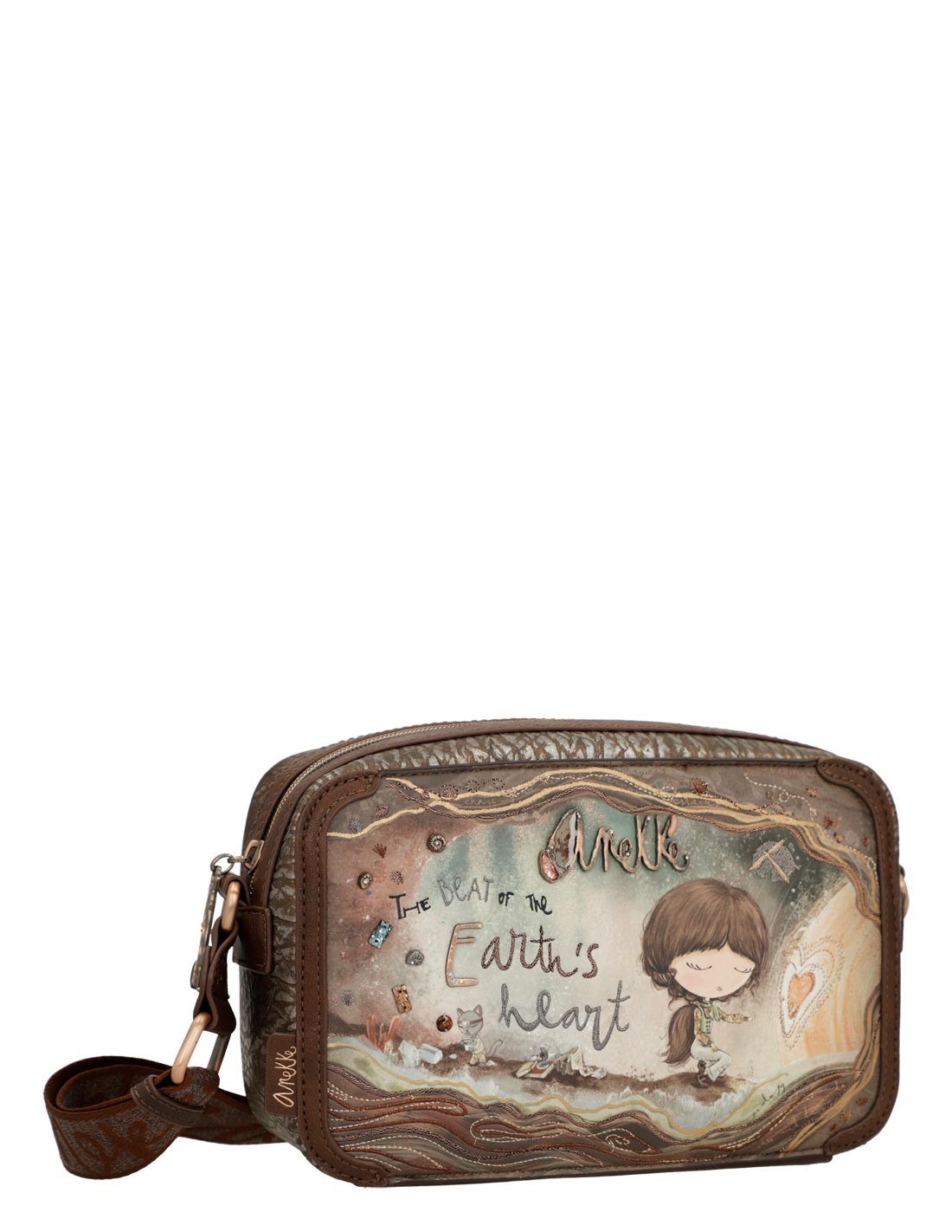 - Design único e sofisticado: Com uma combinação em tons castanhos, bege, verde e laranja, esta mala à tiracolo captura a beleza dos elementos geológicos. Cada detalhe reflete um mundo de texturas e formas inspiradas em fósseis e minerais.