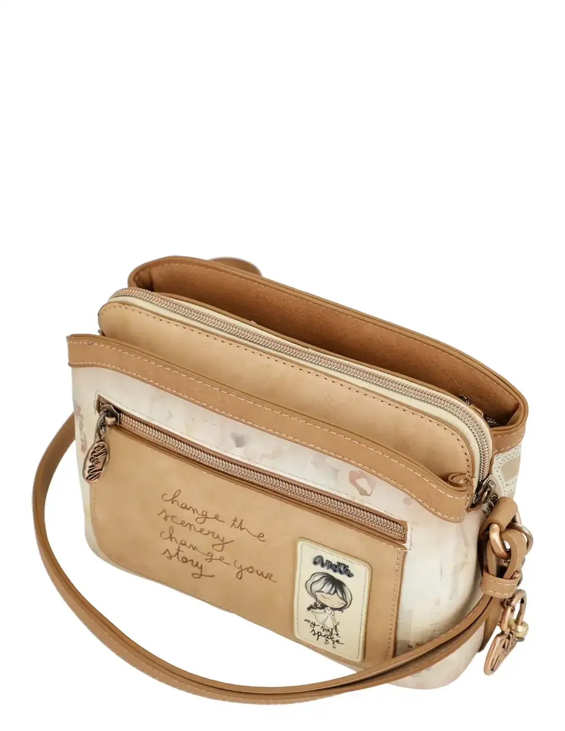 Cada olhar para a Mala a Tiracolo Anekke Whispers é uma viagem através do fascinante mundo das lembranças de Anekke. A ilustração serena de Anekke escrevendo suas memórias te convidará a refletir sobre os teus próprios momentos preciosos, enquanto o bordado “Memories inspire future” te recordará que tudo o que viveste te impulsiona para a frente.